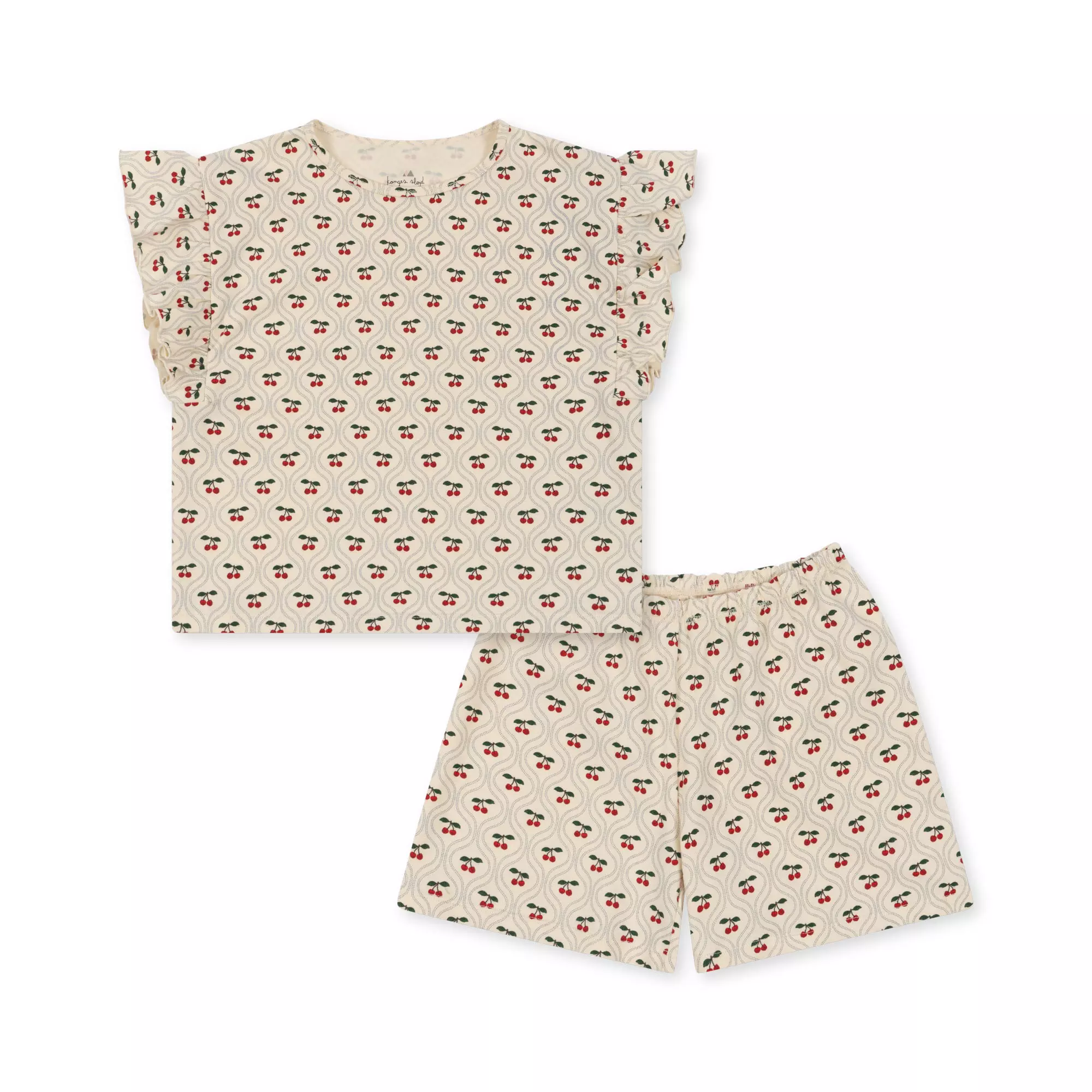 Konges Slojd - Bawełniany zestaw dziecięcy bluzka i spodenki Lin Frill Cherry Motif