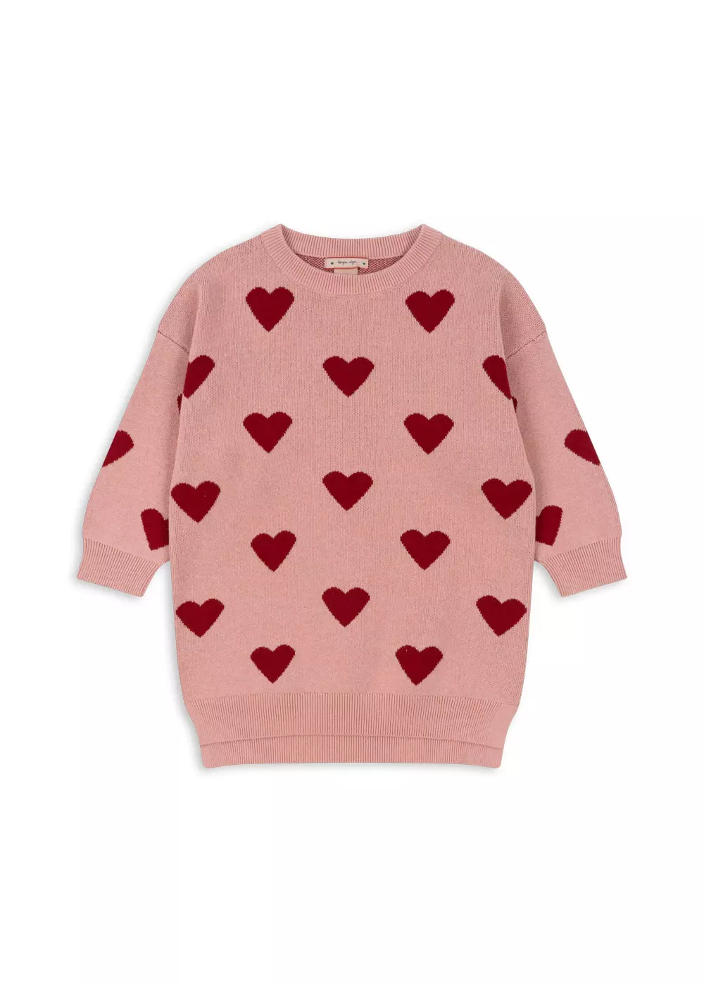 Zainwestuj w KONGES SLOJD Dzianinową Sukienkę LAPIS w Serca – wybór świadomych mam, które szukają stylowych i ekologicznych rozwiązań dla swoich maluchów!