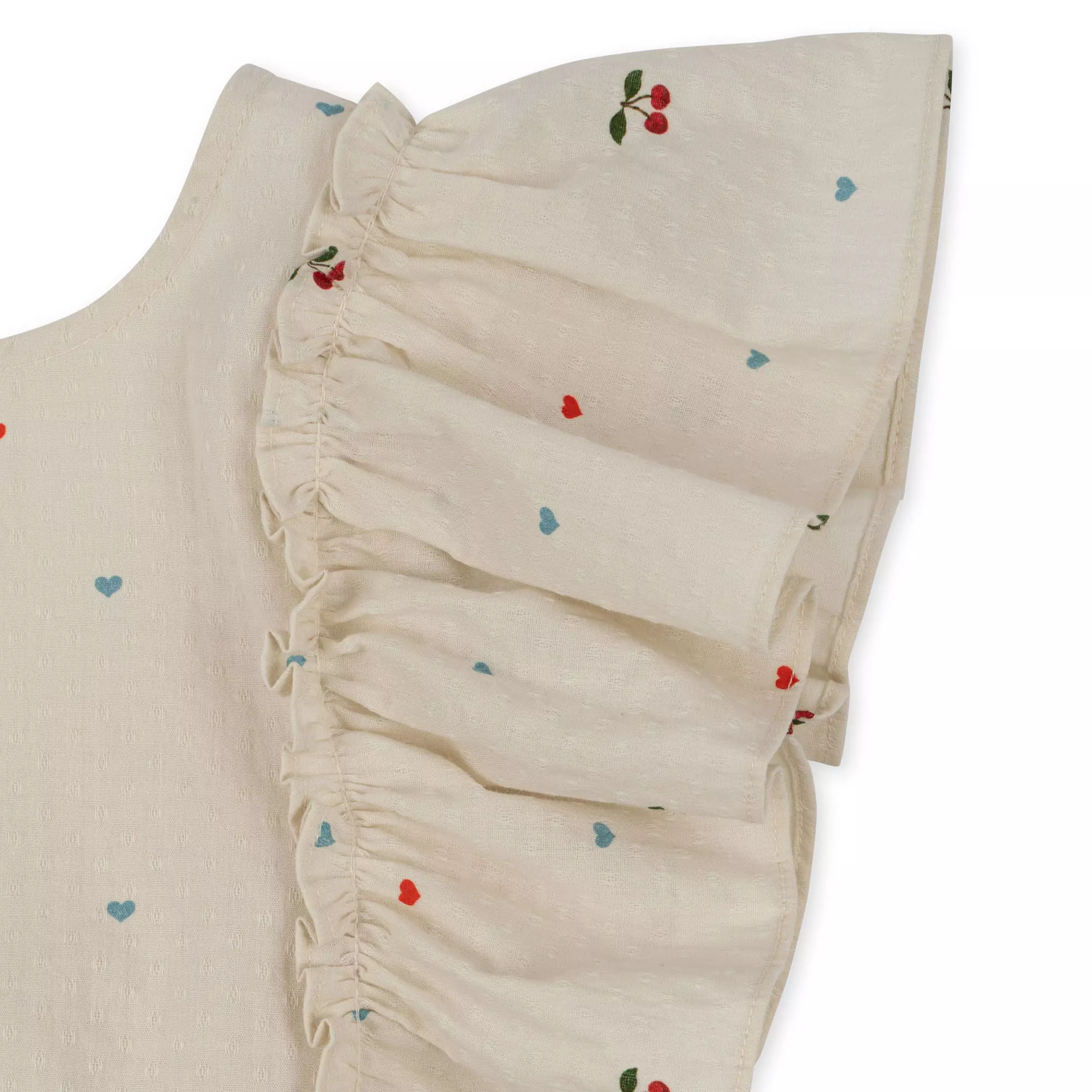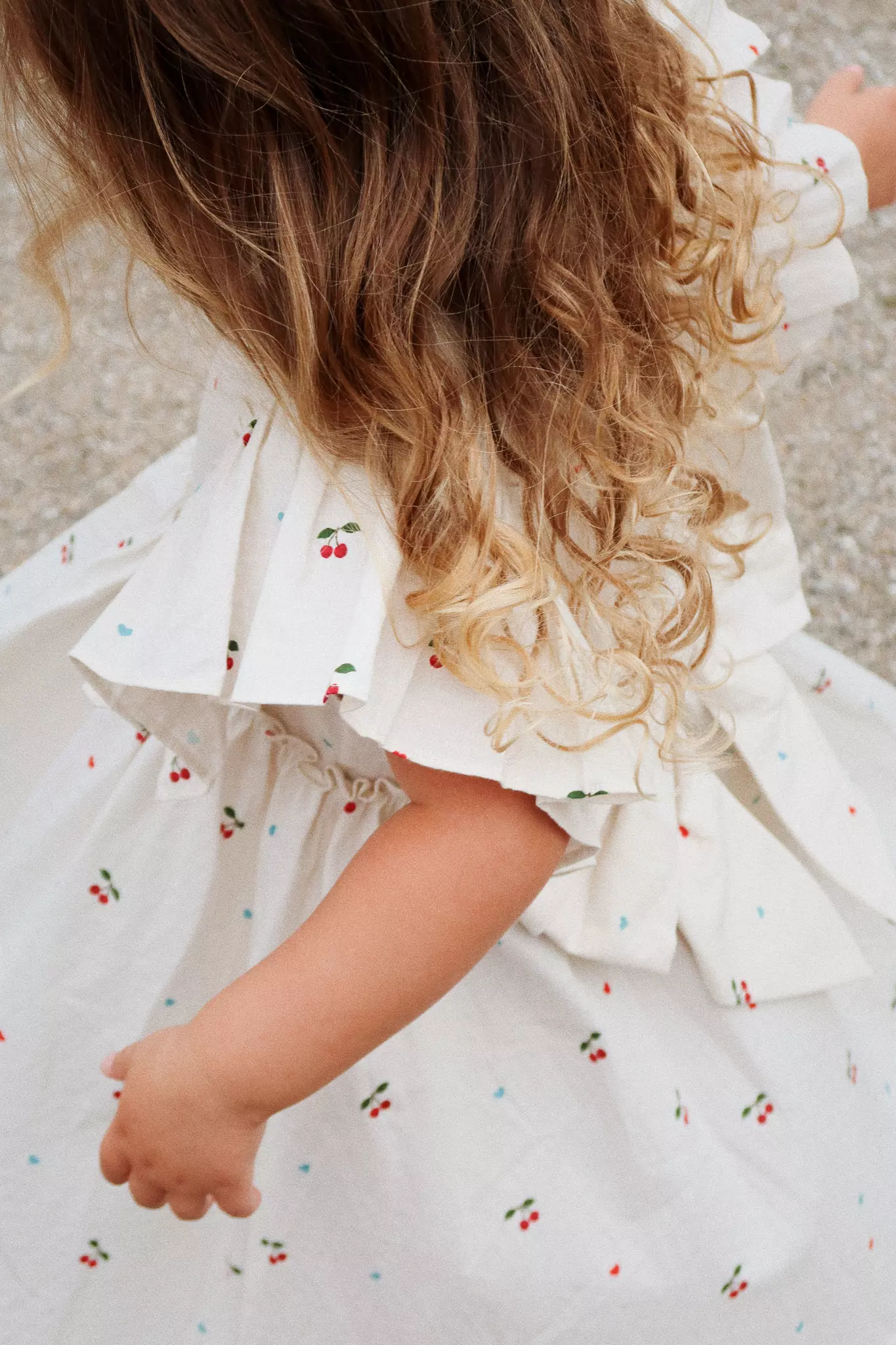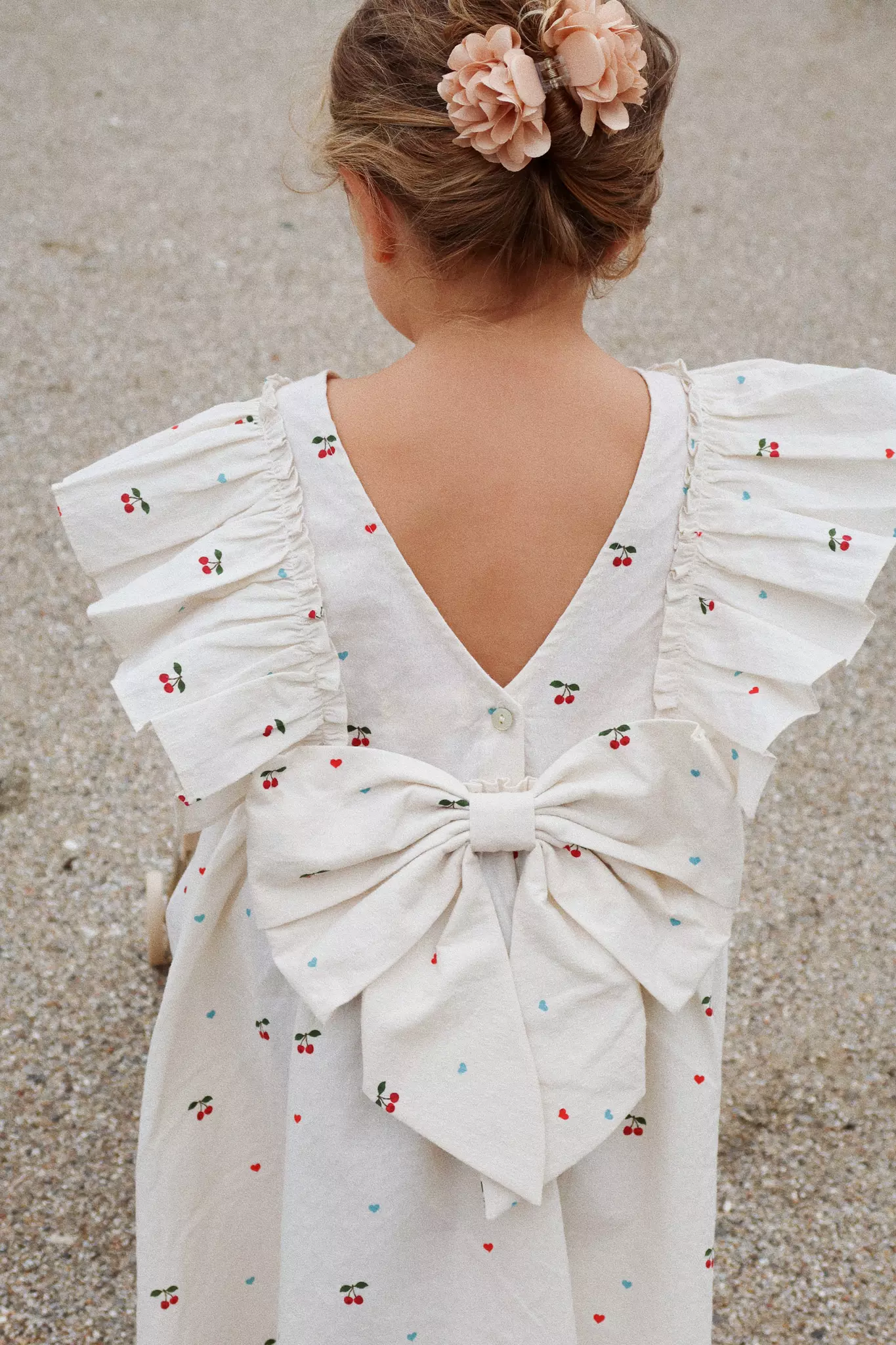 Rozkoszuj się letnimi dniami wraz z naszą uroczą sukienką dziecięcą z kokardą EVIA BOW - CHERRY COEUR od Konges Sløjd. Ta elegancka sukienka z piękną kokardą to idealny wybór dla Twojej małej księżniczki.