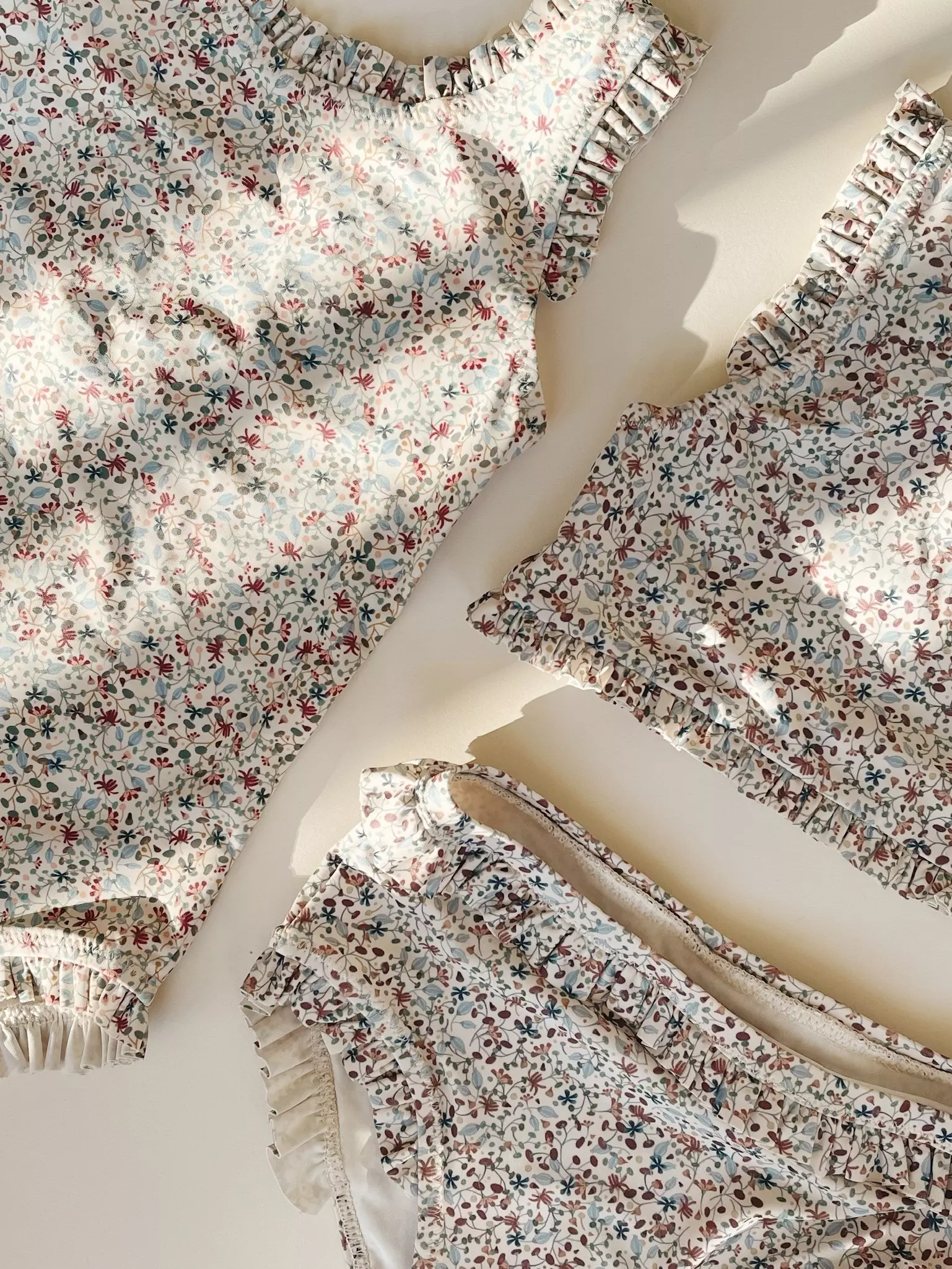 Strój kąpielowy wykonany w 80% z poliestru pochodzącego z recyklingu i 20% elastanu. Posiada falbany na brzegach.