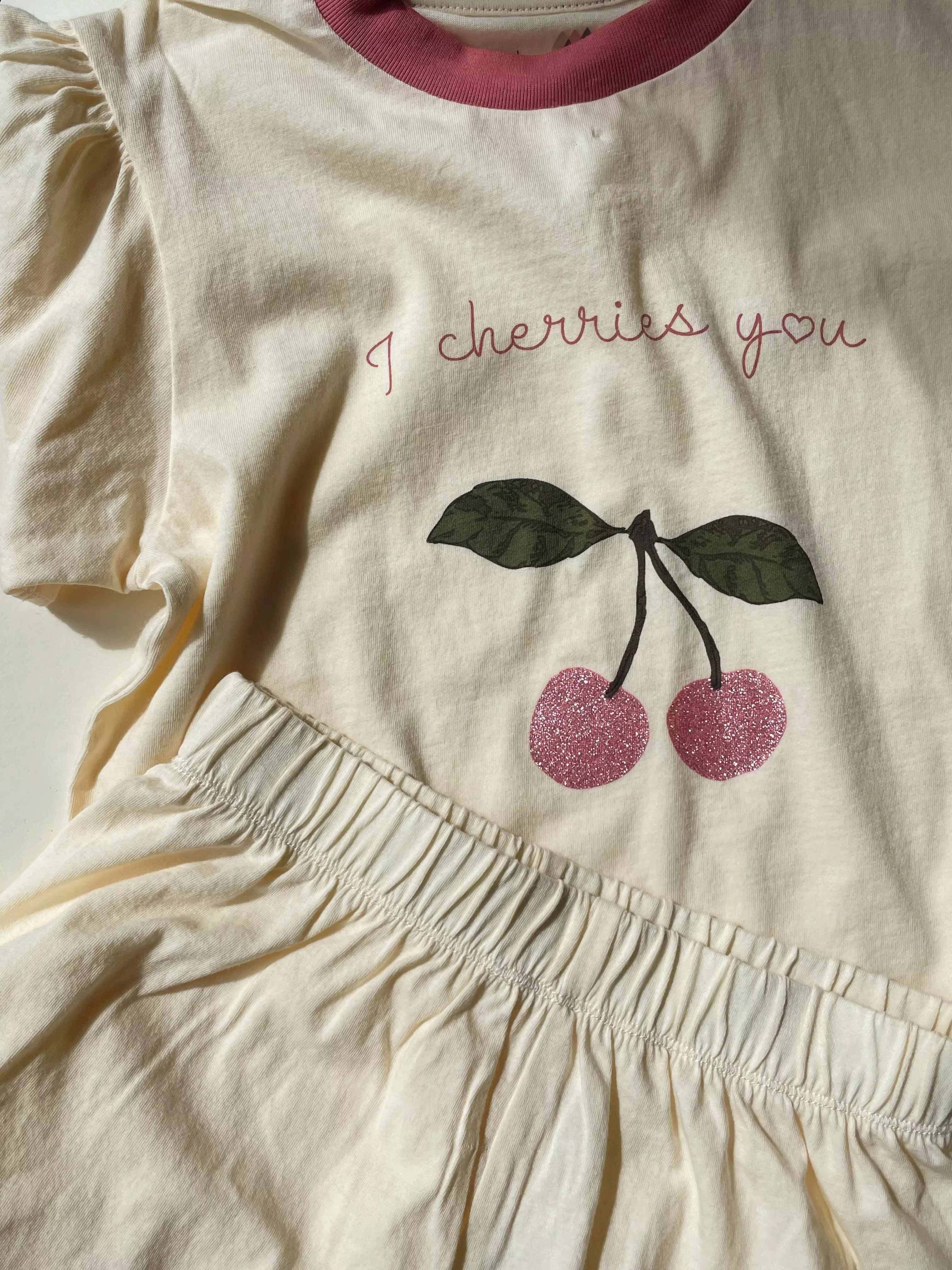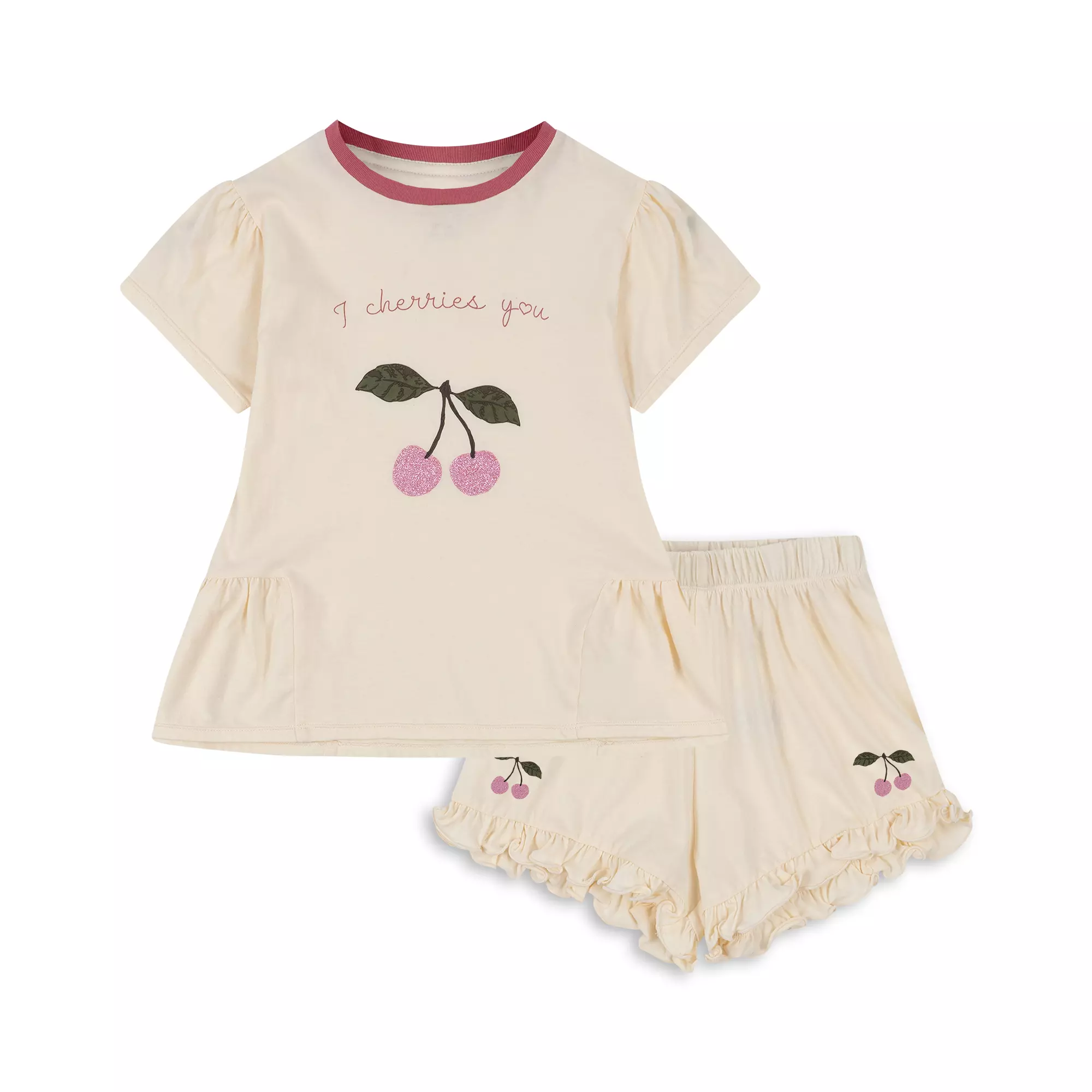 Konges Slojd - Zestaw koszulka i spodenki z falbanką FAMO FRILL - BUTTERCREAM