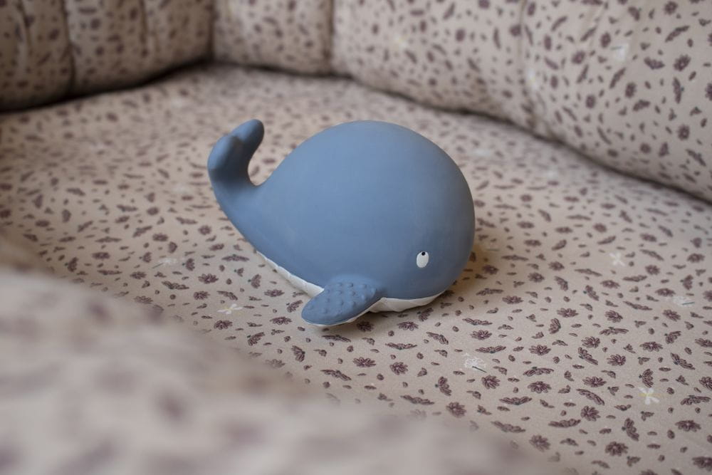 Gryzak w kształcie uroczego wieloryba, wykonany ręcznie z naturalnej gumy. Idealnie sprawdzi się przy ząbkowaniu i przyniesie ukojenie swędzącym dziąsłom. Dzięki ergonomicznemu kształtowi z jego utrzymaniem poradzi sobie każdy maluch.