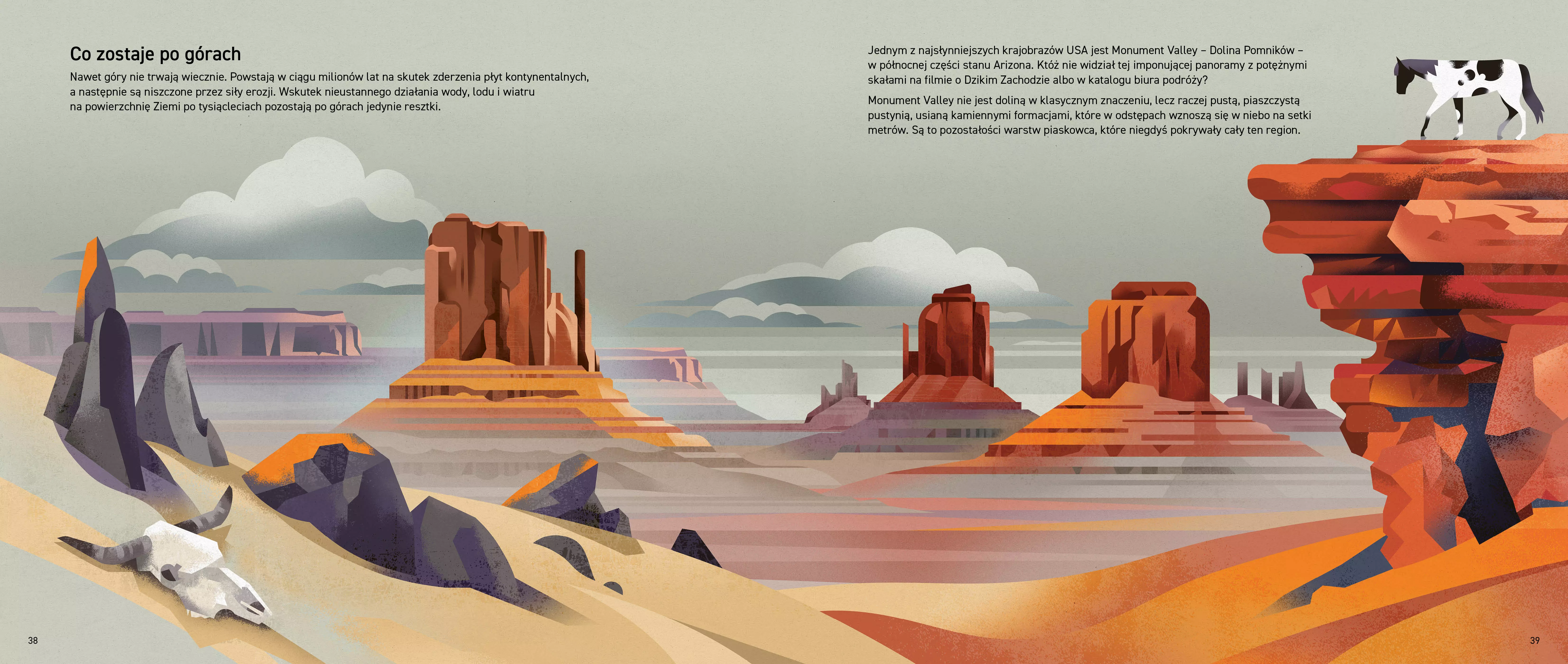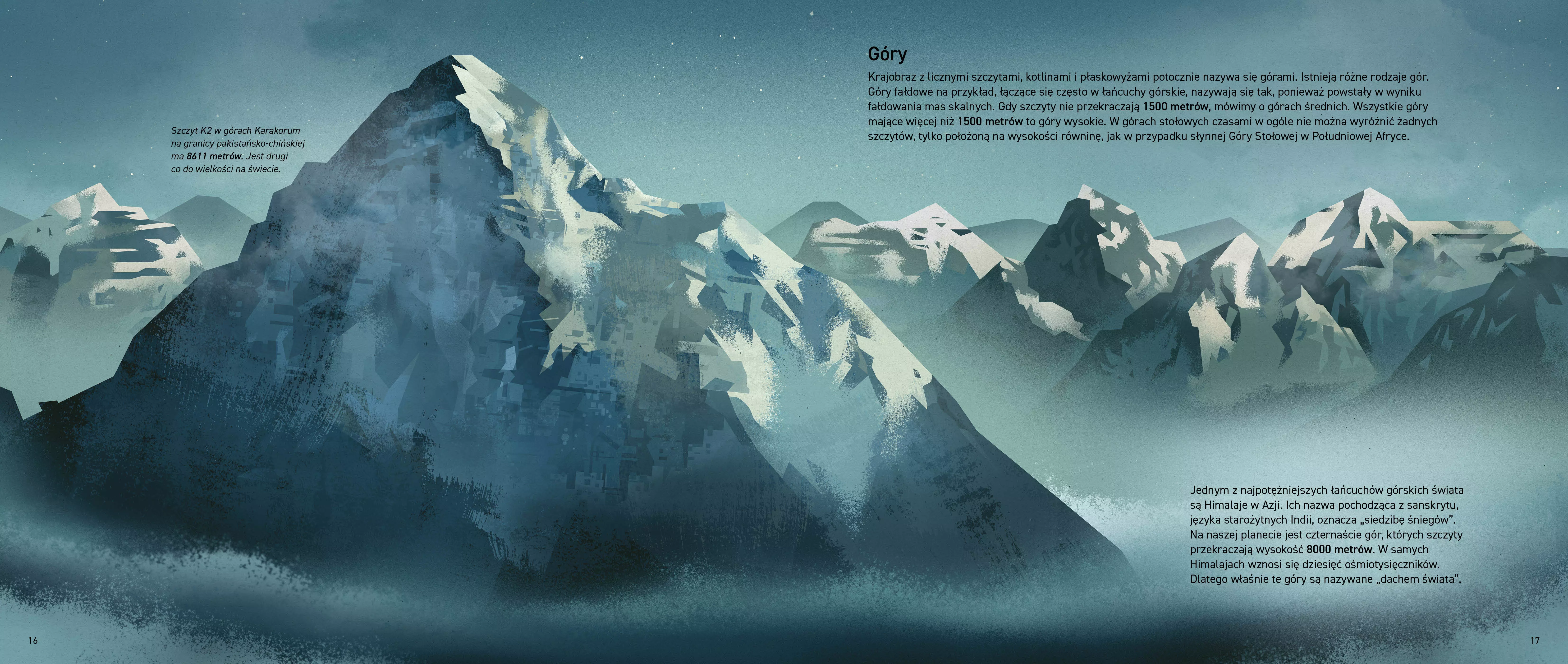Ta urzekająca popularnonaukowa książka przyrodnicza bierze pod lupę fascynujący świat gór – od Alp poprzez Andy aż po Himalaje. Dieter Braun z niezwykłą dbałością o detale portretuje zarówno zwierzęta, jak i człowieka w górach. Znajdziecie tu zatem nie tylko świstaka, kozicę, niedźwiedzia, kondora, ale także zdobywców szczytów, narciarzy i alpinistów. Krótkie teksty zawierają istotne dane, zdumiewające fakty i ciekawostki ze świata gór. Dowiecie się między innymi, jak powstaje góra, dlaczego Mount Everest właściwie nie jest najwyższym szczytem na świecie, kim byli najwięksi rekordziści wśród wspinaczy i co wchodzi w skład ich wysokogórskiego wyposażenia. Odwiedzicie Fudżi w Japonii i poszarpane góry Huang Shan, zimne lodowce i gorące wulkany. Pokonacie mroczne jaskinie i przeżyjecie kąpiel w grzmiącym wodospadzie. Wspaniałej wyprawy!