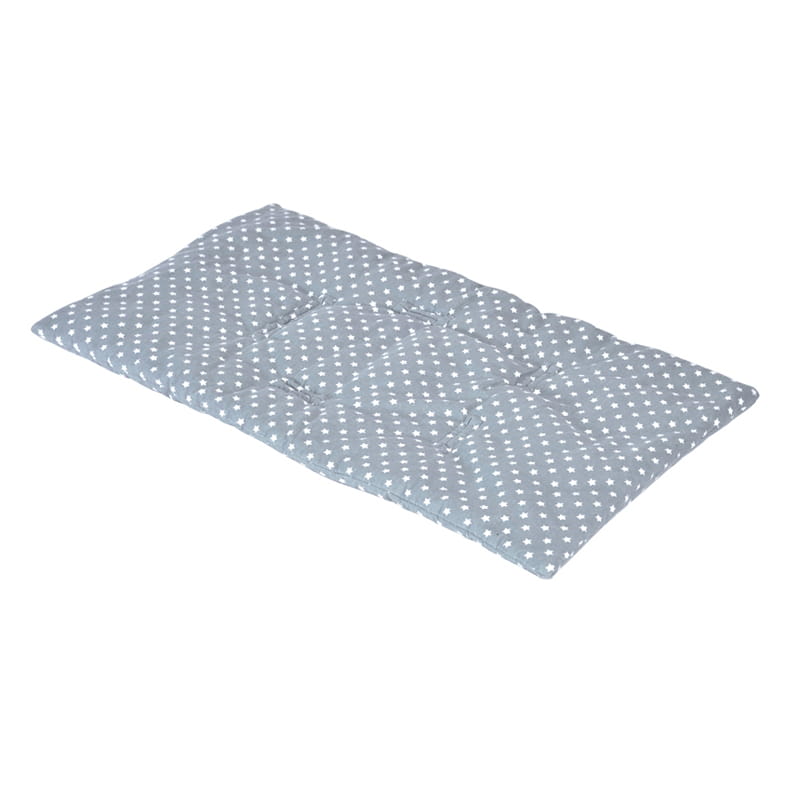 Materacyk posiada wypełnienie z termo ociepleniem składające się z pustych włókien, a z zewnątrz wykonany jest z gładkiej bawełnianej flaneli (100% bawełniana flanela delikatna dla skóry, super milutka).
