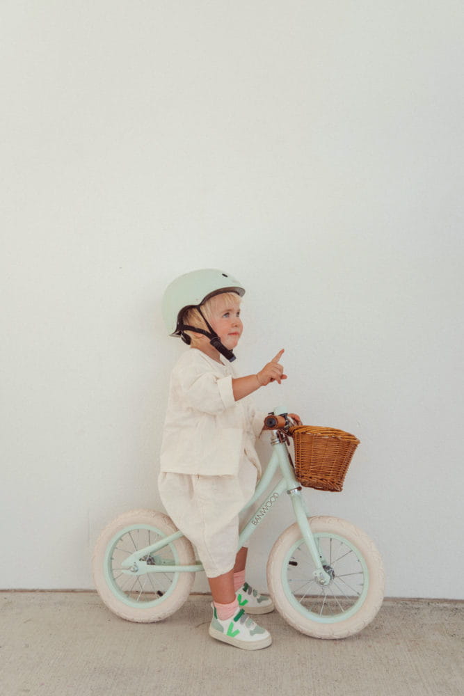 Regulowany kask rowerowy dla dzieci Banwood zabezpiecza malucha podczas jazdy na rowerze i innych aktywności fizycznych.