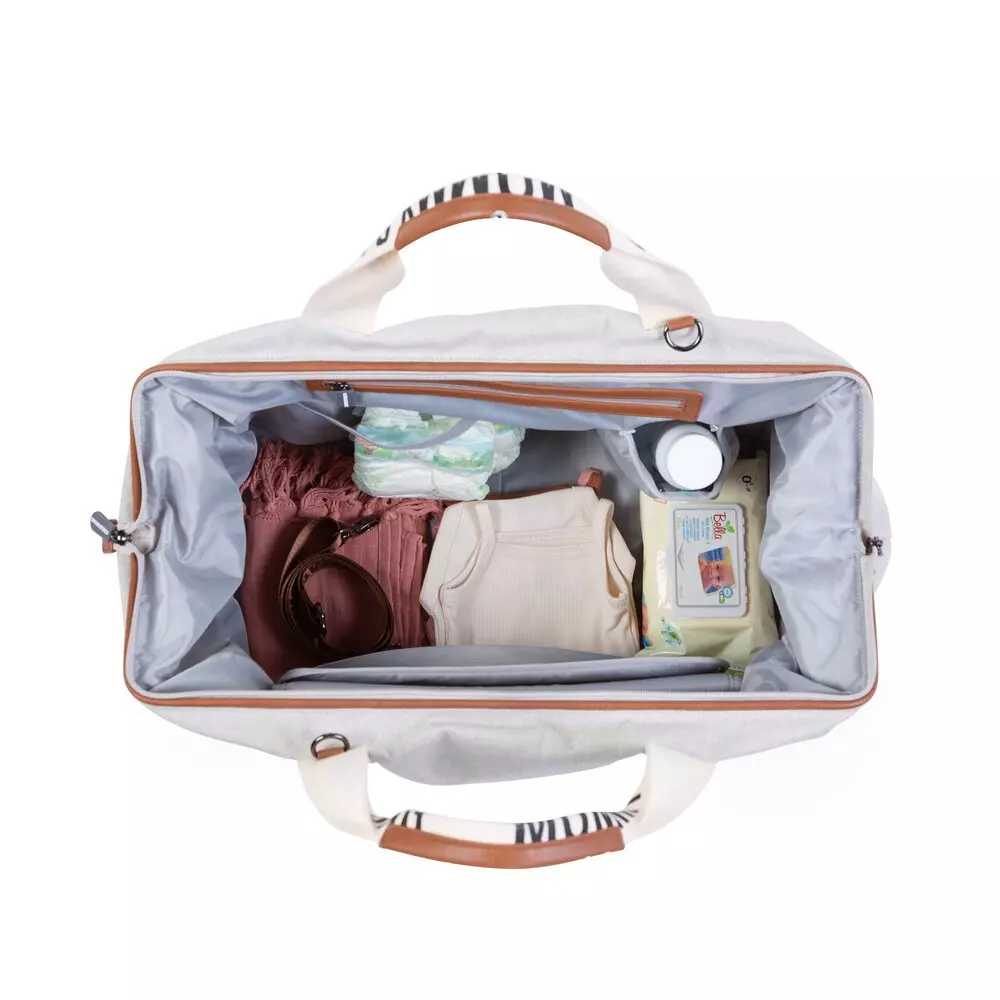 Dzięki licznym przegródkom i elastycznym paskom wewnątrz torby, z łatwością utrzymasz w niej porządek. Weź swoją Mommy Bag na spacer, w gości, w podróż samolotem czy pociągiem a wszystkie niezbędne dziecięce i Twoje rzeczy będą pod ręką, dobrze zabezpieczone.
