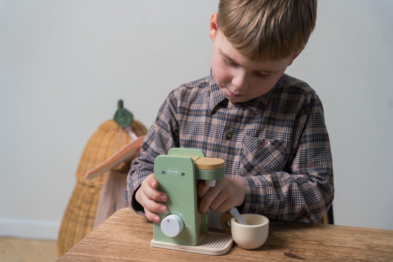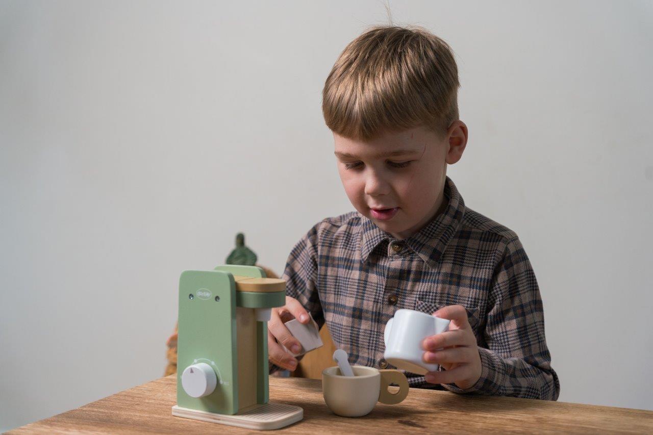 Nie czekaj – wzbogać dziecięcą kuchnię o ten piękny, drewniany ekspres do kawy!