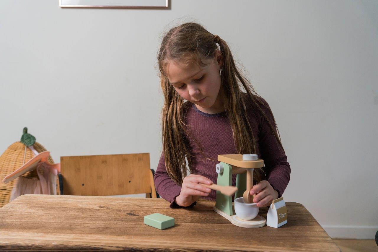 - Rozwój zdolności manualnych – Zabawka angażuje małe rączki malucha, rozwijając precyzję i koordynację ruchową. Przygotowanie "wypieków" za pomocą miksera wspiera rozwój zdolności motorycznych i manualnych dziecka