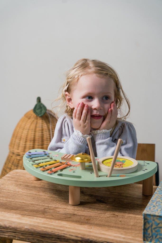 Pozwól swojemu dziecku odkrywać magiczny świat dźwięków i melodii dzięki muzycznemu stolikowi duńskiej marki Dantoy. To wyjątkowa zabawka, która łączy w sobie funkcje kilku instrumentów muzycznych, oferując maluchowi niezliczoną ilość możliwości twórczej zabawy. Maluch może rozwijać swoje zdolności muzyczne, poznawać różne instrumenty, takie jak kolorowe cymbałki czy perkusja, oraz eksperymentować z dźwiękami. Stolik jest doskonałym narzędziem do wspierania rozwoju koordynacji wzrokowo-ruchowej, zręczności manualnej oraz wyobraźni muzycznej dziecka, posiada też piękny desing.