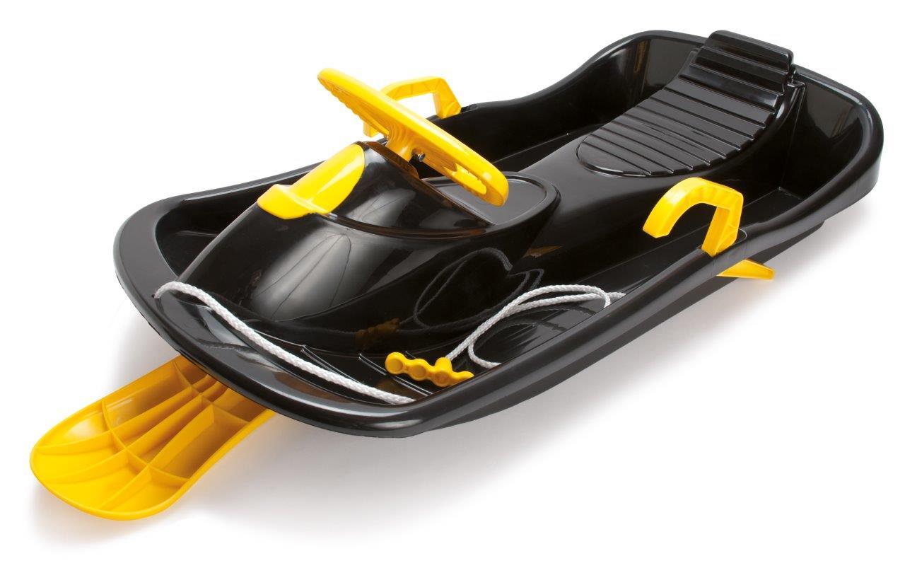 Stabilne, wytrzymałe i sterowane kierownicą sanki typu bobslej z szerokim siedzeniem, nartką i hamulcami. Wytrzymują wstrząsy i duże prędkości na trasie zjazdu z toru saneczkowego. Wyposażone są w linkę i uchwyty, dzięki czemu można łatwo je ciągnąć. Wzmacniają zmysł równowagi i rozwój fizyczny dziecka. Sprawiają, że zabawa na śniegu jest o wiele przyjemniejsza! Sanki są dostępne w 3 kolorach: czerwony, niebieski i czarny, a najważniejsze elementy typu kierownica, nartka sterująca i boczne hamulce są żółte.