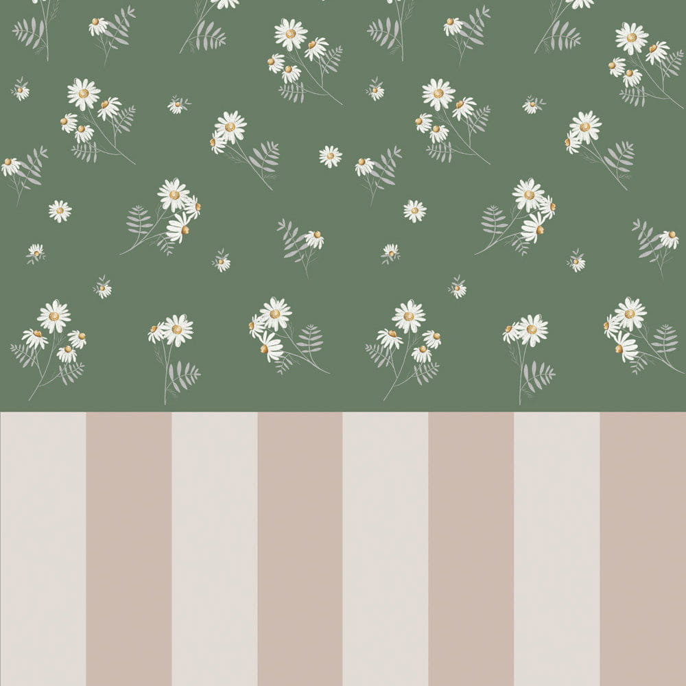 We love that green! A noble shade, falling neither into yellow nor sea green. Against this noble background, we have delicate camomile.