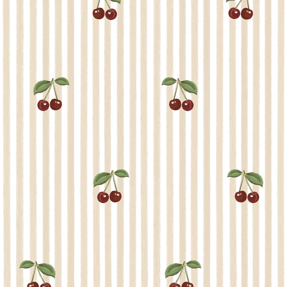 Dekornik - Little Cherries on Beige Stripes Tapeta