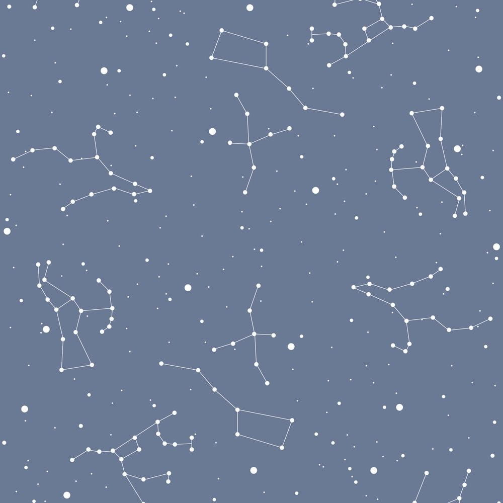 Niebo z konstelacjami. Ale takimi spokojnymi, geometrycznymi. Kolor niebieski na tej tapecie nie jest ciemny, nie należy się go obawiac w pokoju dziecka.