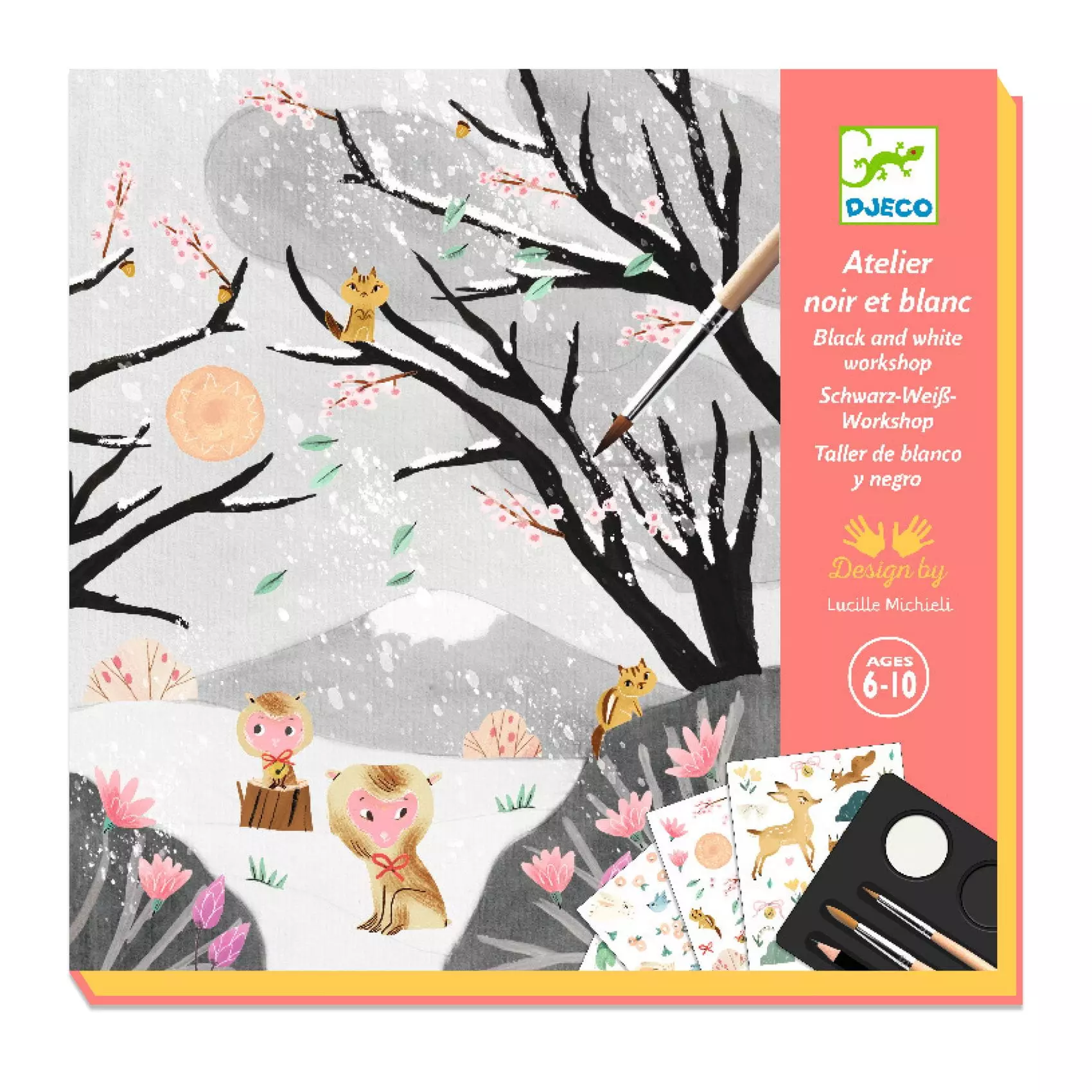 Zestaw artystyczny uczący malowania metodą Suiboku-ga, wywodzącą się z Chin. Dzieci nakładają pędzelkami różne odcienie szarości, tworząc krajobraz, a następnie uzupełniają go kolorowymi dodatkami. Farby są łatwo zmywalne, można też zabezpieczyć miejsce pracy ochronnym obrusem zawartym w zestawie. Wszystkie akcesoria można przechowywać w załączonym pudełku.