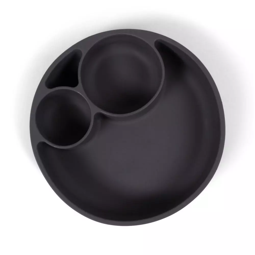 Silikonowy talerz podzielony jest na sekcje z jedną dużą komorą i dwiema małymi miseczkami, co sprawia, że talerz jest idealnym wyborem dla rodziców stosujących metodę BLW.