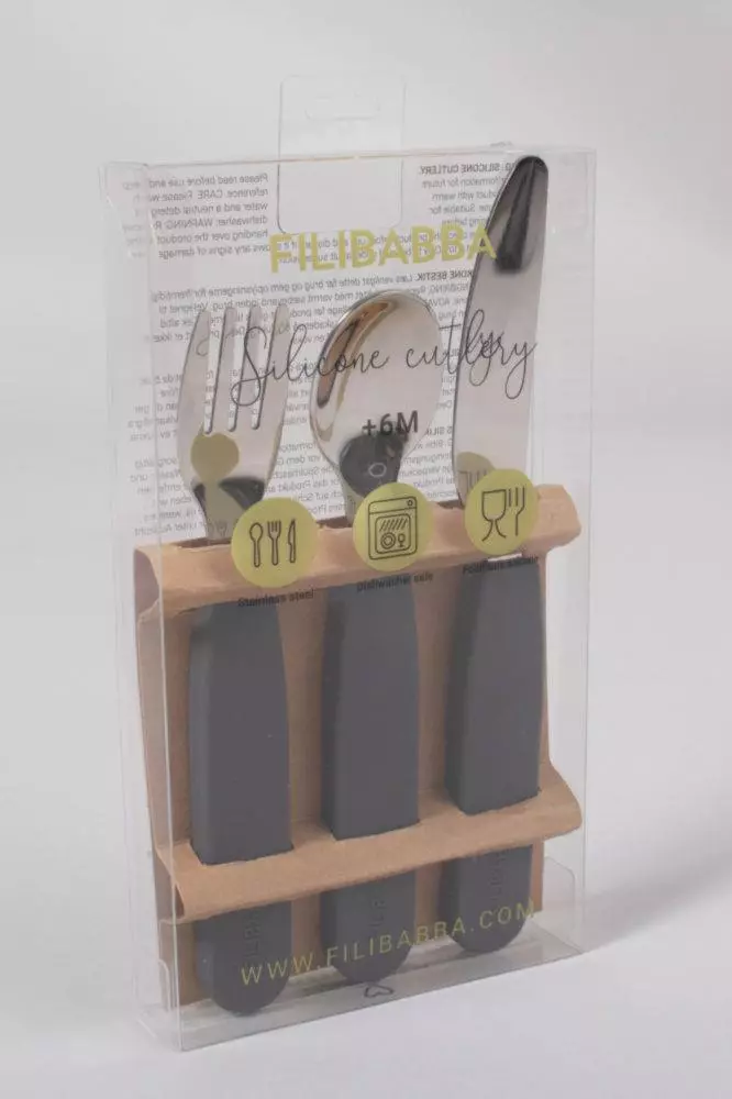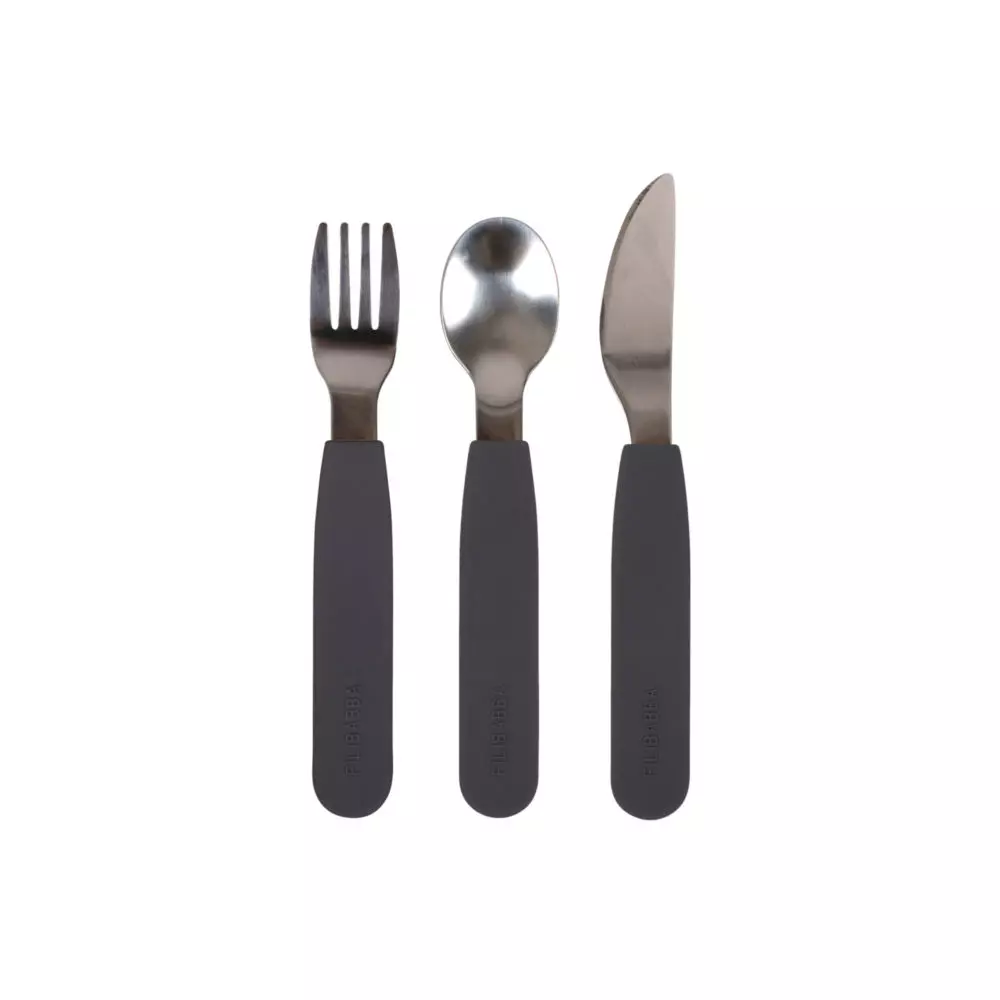 FILIBABBA - Silikonowy zestaw sztućców 3szt. Stone Grey