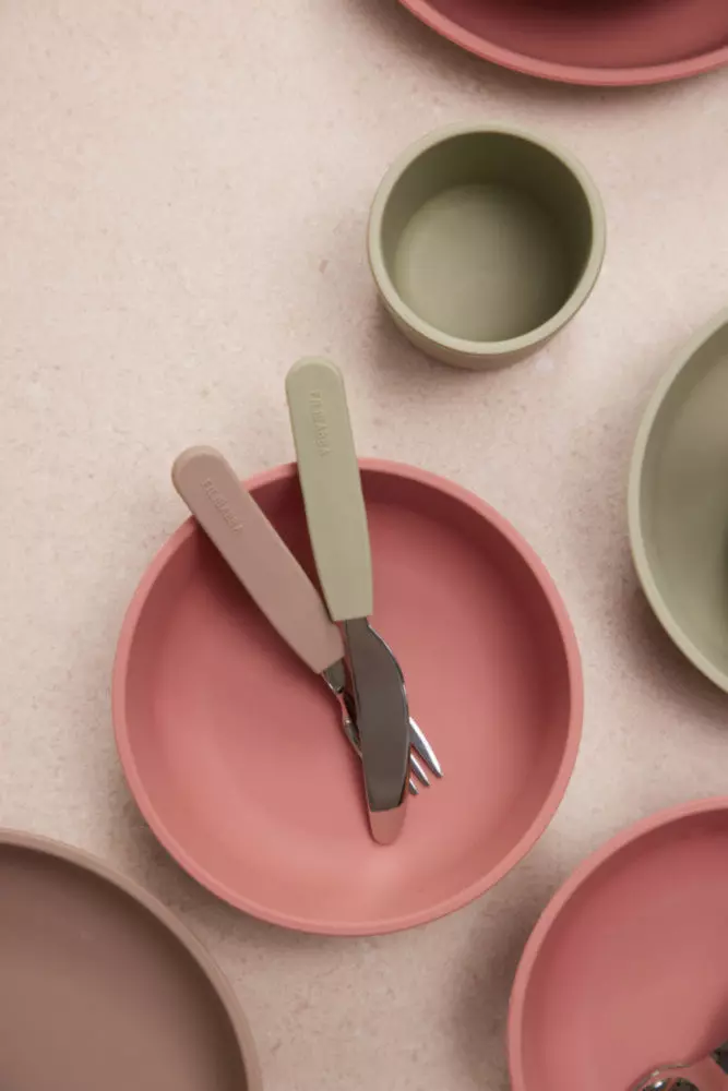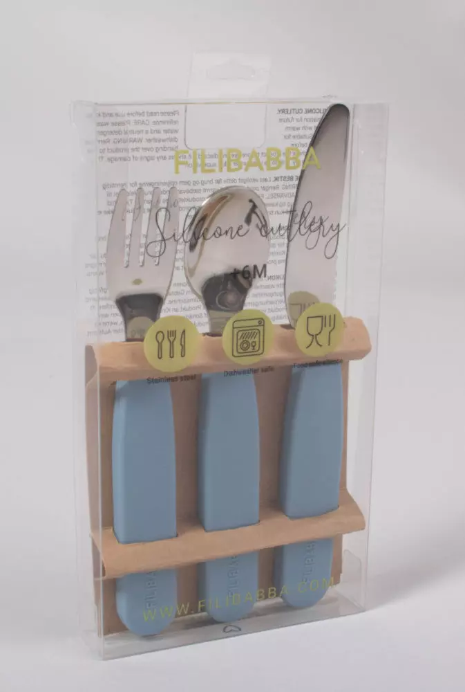 Sztućce dla dzieci Filibabba wykonane zostały w 100% ze stali nierdzewnej, z uchwytami z super miękkiego silikonu bezpiecznego dla żywności i są odpowiednie do mycia w zmywarce.