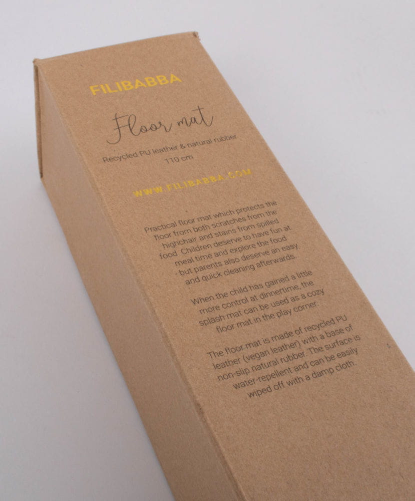 Samodzielne posiłki, rozszerzanie diety BLW, artystyczne zabawy farbami i ciastoliną z matą Filibabba to błahostka! Umieść matę pod krzesełkiem dziecka i miej podłogę pod kontrolą. Mata chroni nie tylko przed plamami z jedzenia, kredek, farb czy ciastoliny, ale również zapobiega zarysowaniu podłogi przez krzesełko do karmienia. I przede wszystkim ułatwia sprzątanie. Mata została wykonana z przetworzonej eko-skóry poliuretanowej, pochodzącej z recyklingu, ze spodem z antypoślizgowej naturalnej gumy. Powierzchnia maty jest wodoodporna, można ją łatwo wyczyścić za pomocą wilgotnej ściereczki. Neutralne, stonowane kolory naszych mat dopasują się do każdego wnętrza.