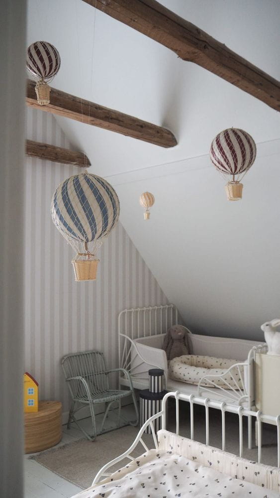 Piękna i stylowa dekoracja pokoju dziecięcego. Balon wytworzony jest ręcznie, z największą starannością i dbałością o detale. Do jego wykonania użyto materiałów pochodzących z recyklingu. Balon zapakowany jest w dekoracyjne pudełko, które może posłużyć do przechowywania dziecięcych drobiazgów.