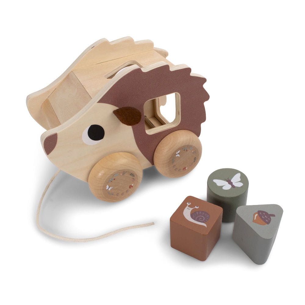 Uroczy drewniany jeż Filibabba to zabawka na kółkach i sorter kształtów w jednym. Ten wesoły jeżyk będzie podróżował po całym domu, a sorter kształtów z pewnością zajmie małe rączki na długi czas.