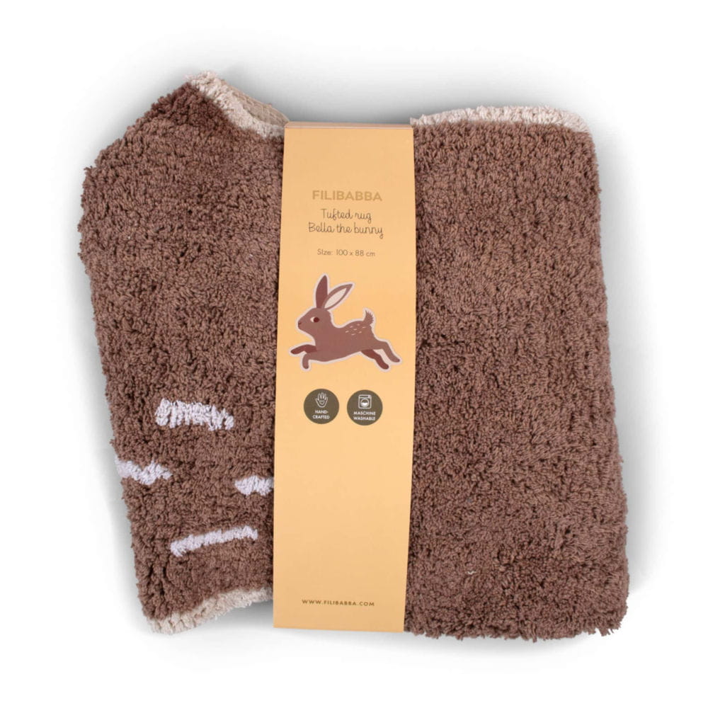 Miękki, bawełniany dywan w kształcie uroczego króliczka Bella. Wykonany w 100% z bawełny z długim włosiem. Dywan wprowadzi przytulna atmosferę i nada wyjątkowości każdemu dziecięcemu wnętrzu.Dywan posiada powłokę antypoślizgową.