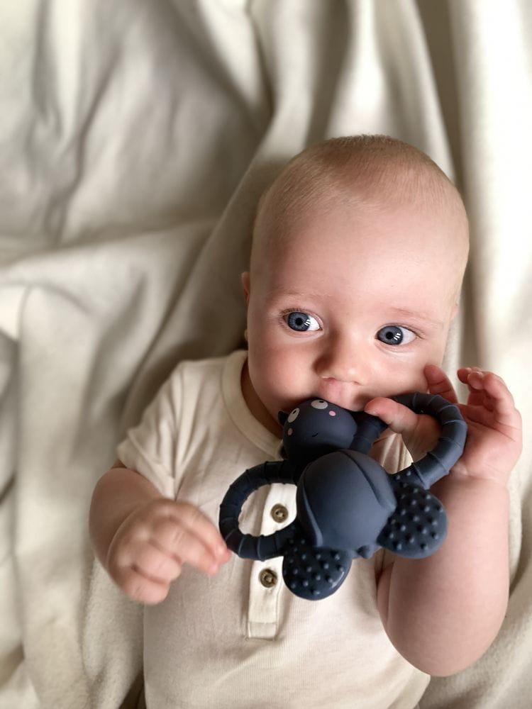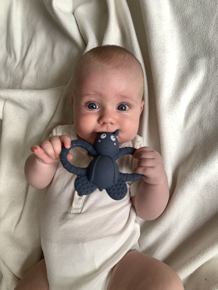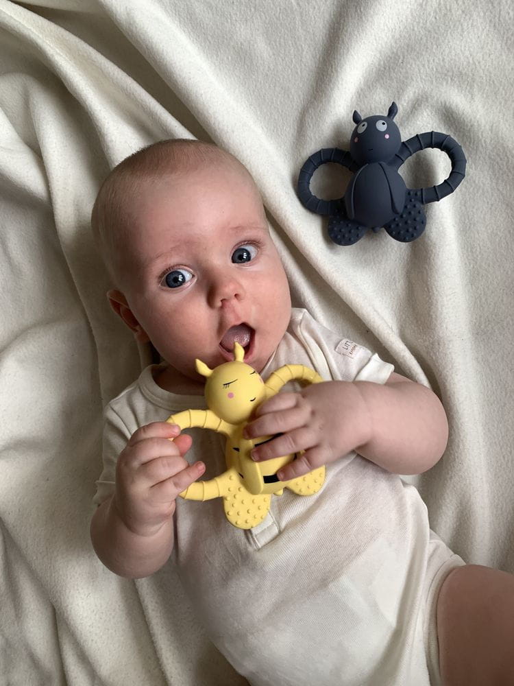 Gryzak w kształcie uroczej muszki, wykonany ręcznie z naturalnej gumy. Idealnie sprawdzi się przy ząbkowaniu i przyniesie ukojenie swędzącym dziąsłom. Dzięki ergonomicznemu kształtowi i poręcznym skrzydełkom z jego utrzymaniem poradzi sobie każdy maluch.