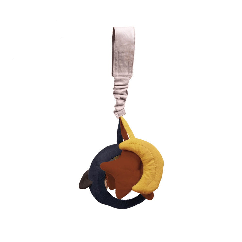 Lusterko sensoryczne z szeleszczącymi elementami. Posiada zapięcie na rzep dzięki czemu można zwiesić je na pałąku z zabawkami, przy łóżeczku czy w wózku.