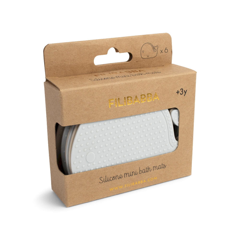 Filibabba Mini maty silikonowe do kąpieli 6 szt. Whales Blue Mix
