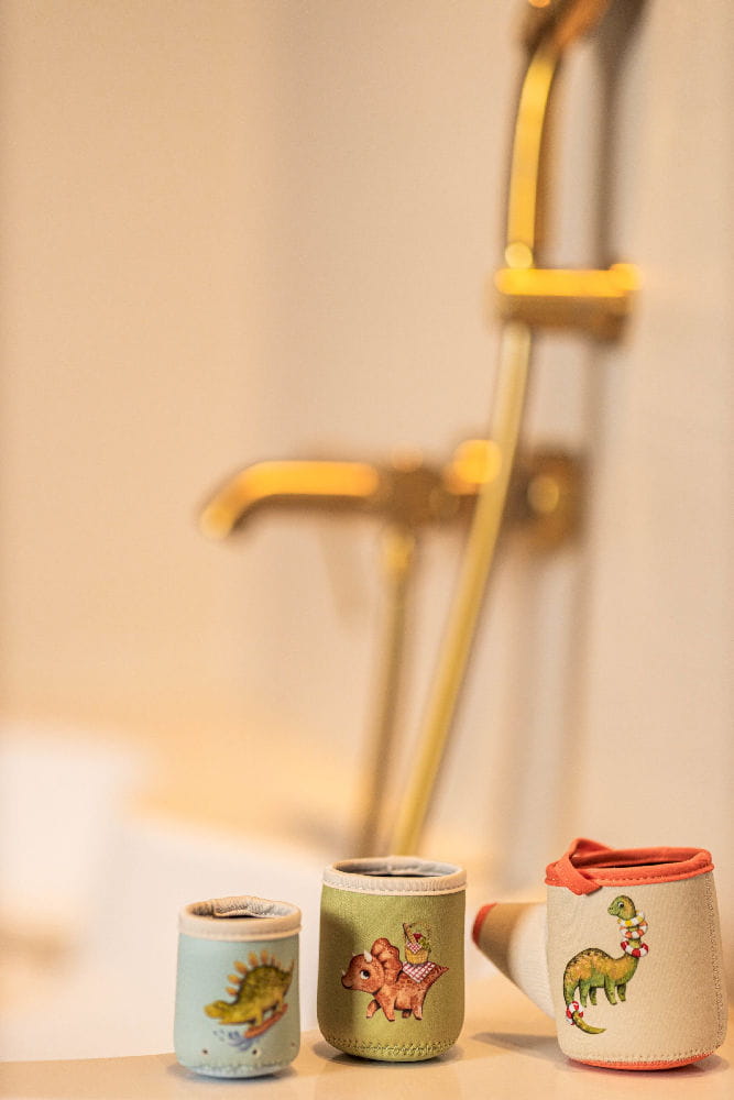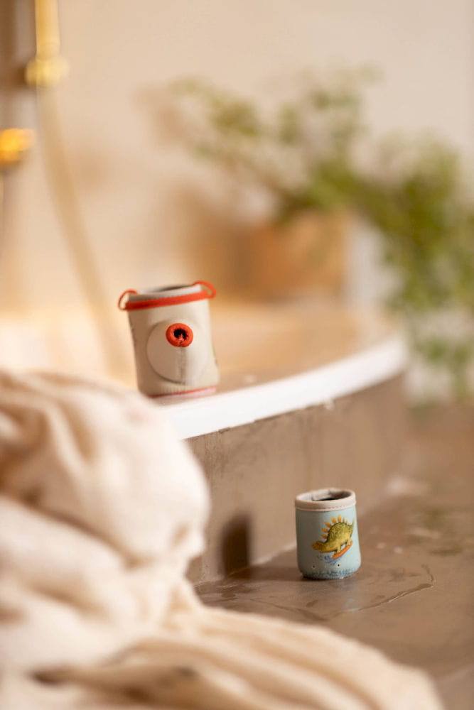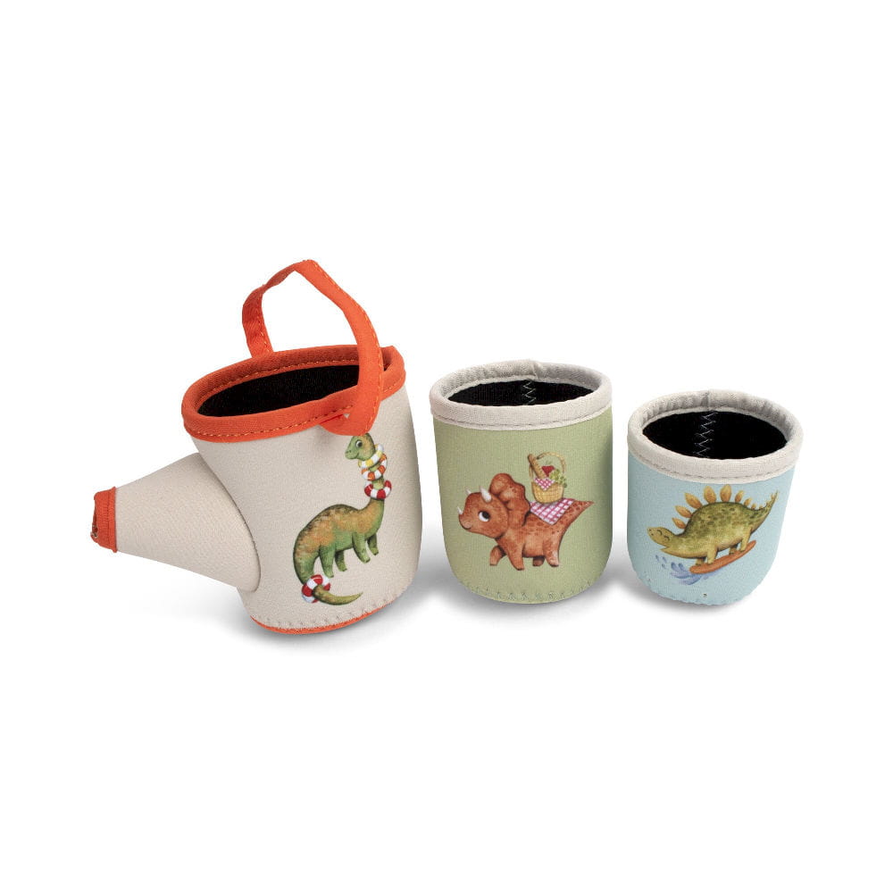 Przekształć kąpiel w fascynującą przygodę dzięki tym uroczym, neoprenowym kubeczkom do zabawy. Zaprojektowane z zabawnymi ilustracjami dinozaurów, kubeczki dodają odrobinę fantazji do każdego plusku i nalewania wody. Zestaw zawiera trzy kubeczki, w tym jeden z rączką, który służy jako konewka, zwiększając radość i różnorodność zabawy w wodzie. Kubeczki posiadają otwory w dnie, co czyni je idealnymi do zabawnych aktywności wodnych, które zachwycają i bawią.