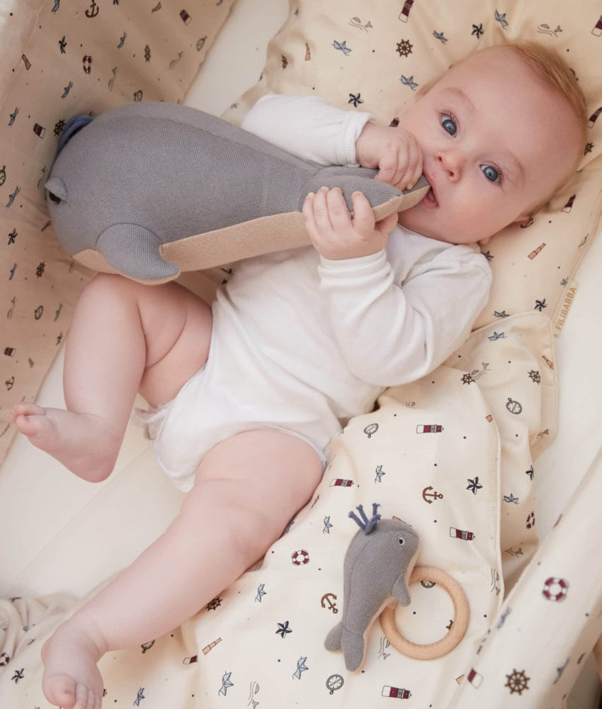 Dzięki swojej uroczej buźce, wieloryb błyskawicznie nawiązuje relację z dzieckiem.