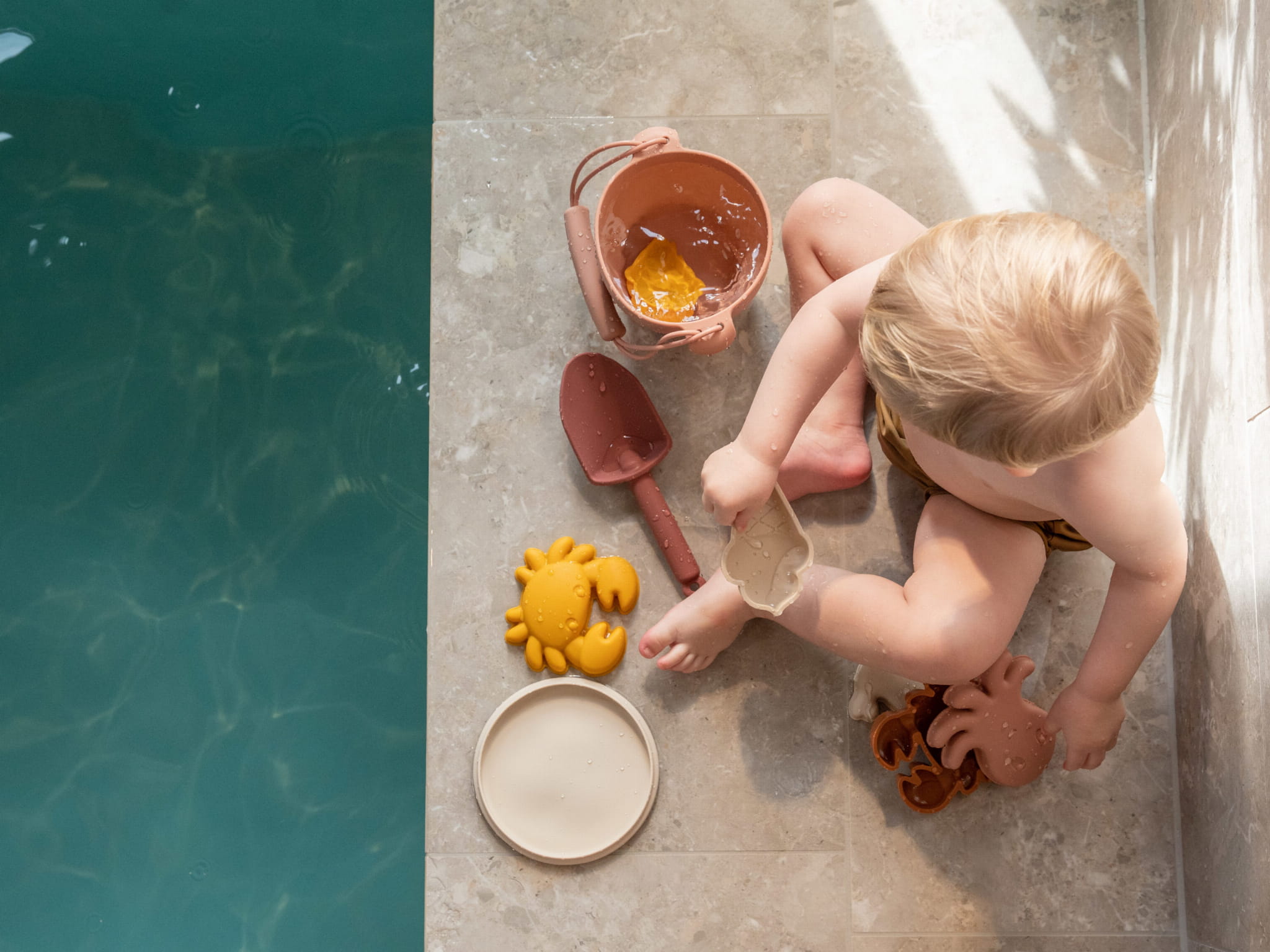 Zestaw zabawek do piasku w wiaderku został wykonany z miękkiego i bardzo trwałego silikonu, w 100% wolnego od BPA.