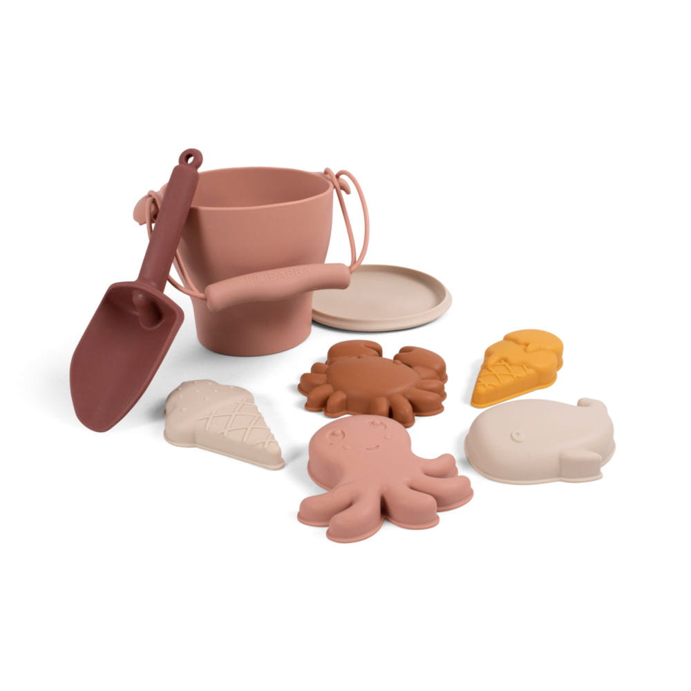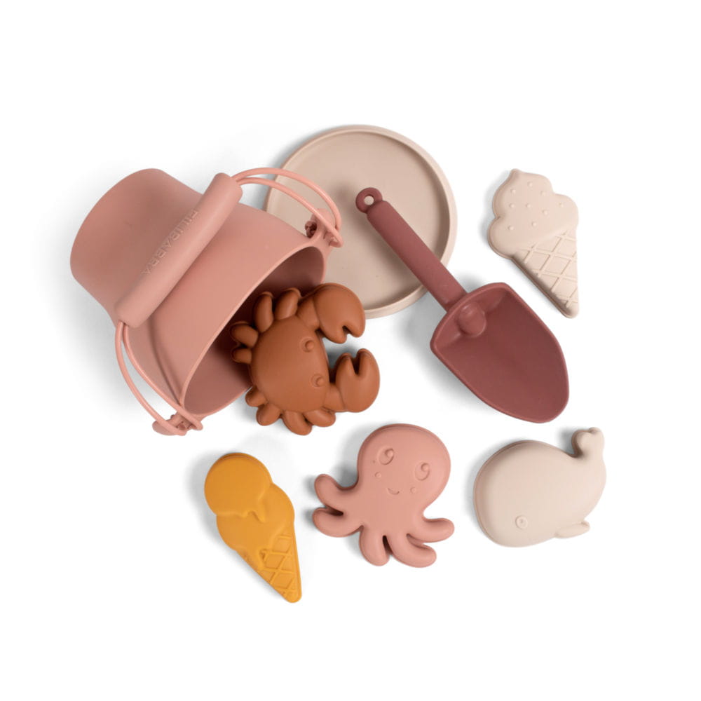 Filibabba Silikonowy zestaw wiaderko i zabawki do piasku Warm colors