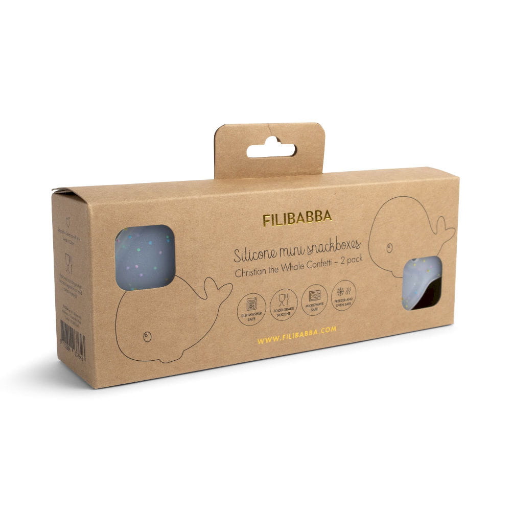 Filibabba - Zestaw 2 silikonowych mini pudełek na przekąski Wieloryb Christian Confetti