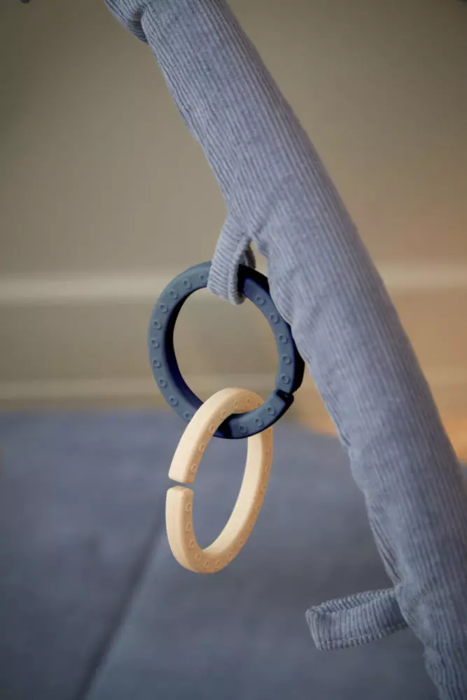 Pojedyncze kółeczko może służyć również jako gryzak. Miękkie i elastyczne kółka wykonane są z wytrzymałego i super miękkiego silikonu, w 100% wolnego od BPA i ftalanów. Zawieszki są idealnym dodatkiem do naszej maty edukacyjnej Loui. W zestawie sześć kółek, w przyciągających wzrok odcieniach granatu, przygaszonej zieleni oraz kremu. Zawieszki można czyścić w zmywarce.