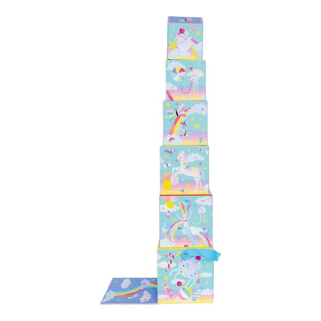 Przygotuj się na niekończącą się zabawę! Zbuduj wieżę z kolorowych kostek, a następnie odkrywaj nowe możliwości zabawy z drewnianymi elementami. Policz liczby po jednej stronie kostek i dopasuj sceny po drugiej stronie, układając je w odpowiedniej kolejności lub obok siebie. Zestaw zawiera 6 kostek do układania oraz 3 drewniane elementy do zabawy, w tym 2 na kółkach. Wszystkie części są przechowywane w dużym pudełku z poręcznym uchwytem, co ułatwia zabranie zabawy wszędzie tam, gdzie chcesz!