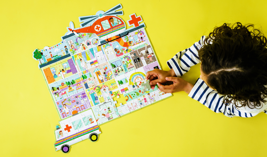 Puzzle Szczęśliwy Szpital to świetna zabawa. Składają się z 3 niezależnych układanek, które łączą się w jedną. Dwie 12 częściowe układanki łączą się z główną 76 częściową. W zestawie znajdziecie duży helikopter i dużą, super fajną karetkę do ułożenia, które następnie wpasują się w wspaniałą scenerię Szczęśliwego Szpitala. Gdy układanka jest gotowa, można włożyć ją z powrotem do okrągłej walizeczki z pięknie ilustrowaną pokrywką i zabrać ją na następną przygodę, korzystając z poręcznego uchwytu. Puzzle to forma zabawy, która korzystnie wpływa na rozwój dziecka. Przede wszystkim bawią, uczą, rozwijają małą motorykę, wspomagają koncentrację, ćwiczą u dziecka cierpliwość i wytrwałość.