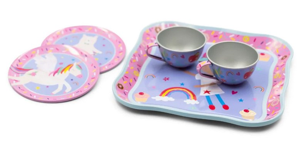 Zestaw do herbaty ozdobiony wspaniałymi, kolorowymi ilustracjami z motywem Tęczowych Wróżek to gwarancja świetnej zabawy! W kolorowej walizeczce z uchwytem znajdziecie: czajniczek, 2 filiżanki, 2 spodeczki i tacę do serwowania. Zestaw herbaciany pozwala na zabawę w dom i odgrywanie ról, stanowiąc również świetną propozycję zabawy dla dzieci w grupie. Uczy umiejętności społecznych i nawiązywania relacji. Walizeczka wyposażona jest w poręczny uchwyt, dzięki czemu można je łatwo przenosić z miejsca na miejsce.