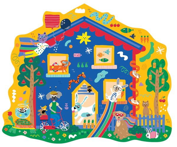 Zwierzaki to 80 elementowa oryginalna układanka w kształcie kolorowego domku, zamieszkałego przez kolorowe i urocze zwierzaki. To fantastyczna zabawa w układanie, którą pokocha każde dziecko. Żywe kolory i ciekawy kształt zachęcają maluchy do zabawy. Piękne, kolorowe ilustracje zwierzaków przyciągają wzrok dzieci i sprawiają, że zabawa staje się jeszcze ciekawsza. Puzzle świetnie sprawdzają się w domu, podczas podróży i wspólnych zabaw.