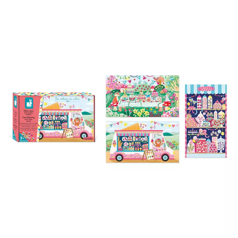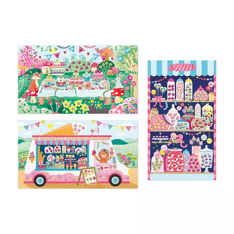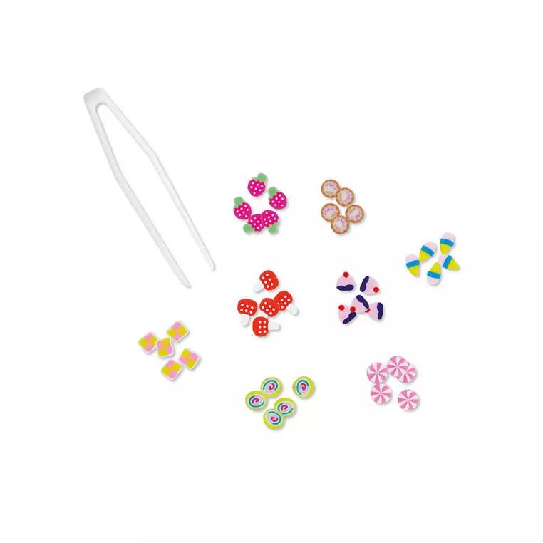 Kreatywne Zabawy: Zestaw kreatywny Mini Ozdoby Smakołyki francuskiej marki JANOD to zaproszenie do świata wyobraźni i kreatywności dzieci. Zawiera 3 plansze z barwnymi obrazkami przedstawiającymi kram ze słodyczami, słodki foodtrack i przyjęcie w lesie. Dziecko może ozdabiać te obrazki przyklejając do wyznaczonych miejsc małe ozdoby z gliny polimerowej (360 sztuk!) w 8 różnych kształtach, m.in. truskaweczek, cukierków, żelków, lizaczków, i inne.