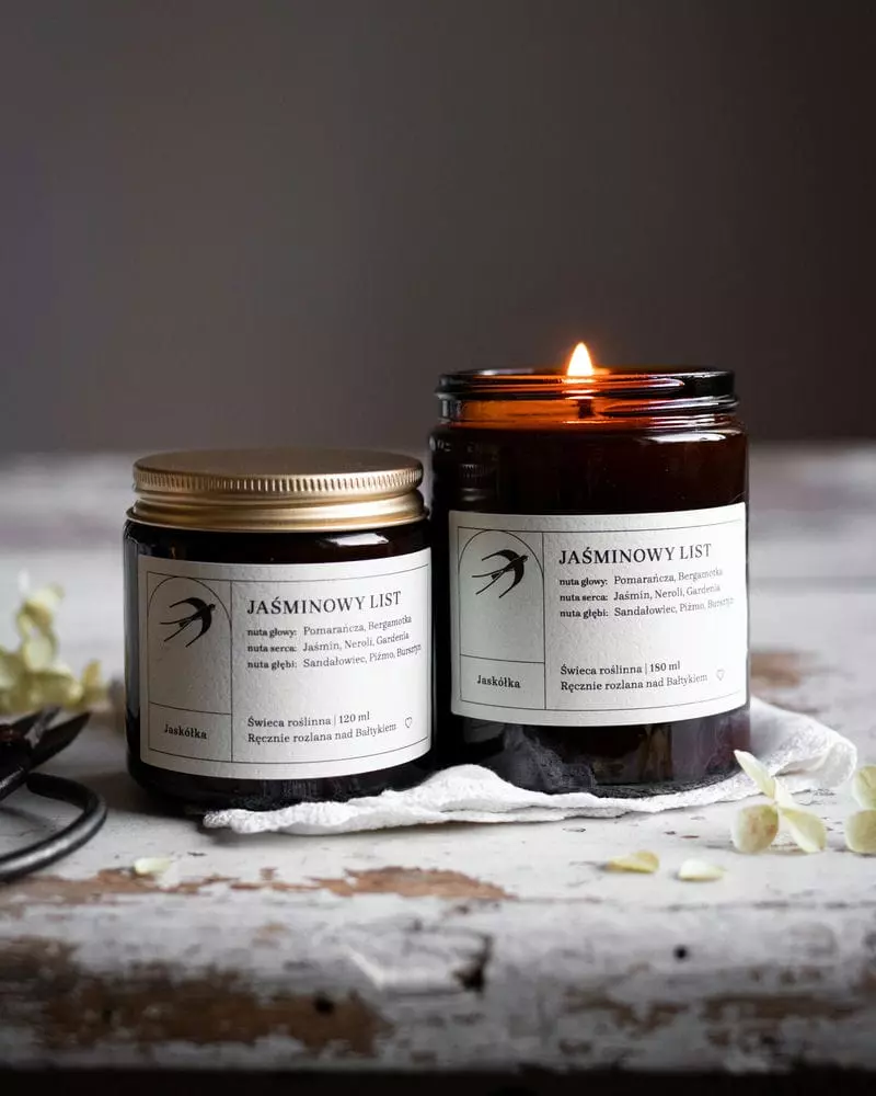 Świece z wosku sojowego spalają się o połowę wolniej niż parafinowe, co oznacza, że otulającymi nutami świecy od Jaskółki możesz delektować się dwa razy dłużej niż zapachem klasycznej świeczki.
