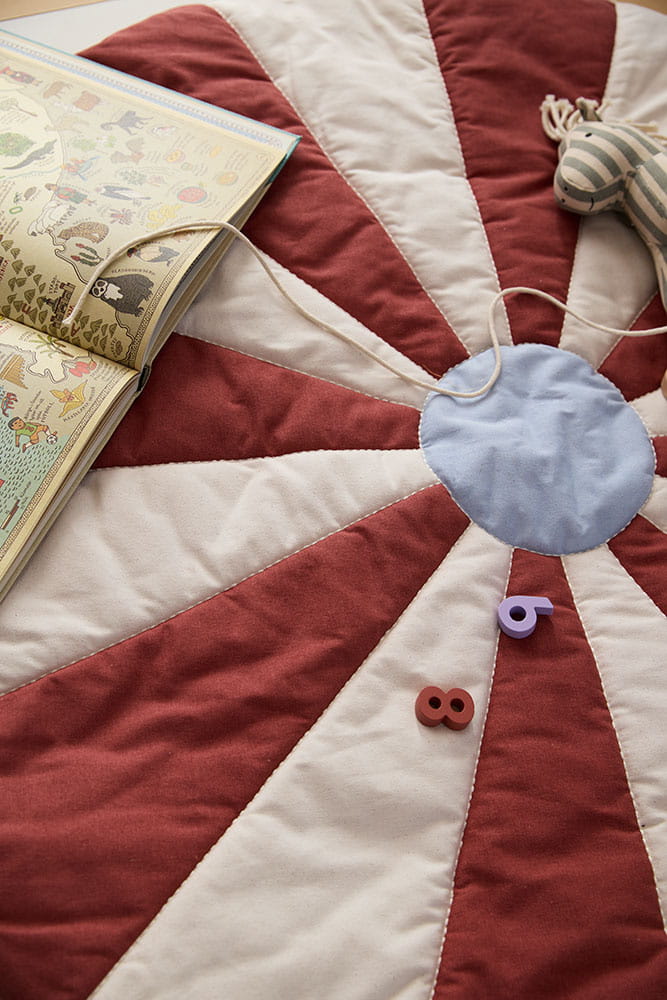 Duża, dekoracyjna i dwustronna mata do zabawy pozwala w prosty sposób stworzyć miękką, przytulną przestrzeń w każdym pomieszczeniu. Została zaprojektowana tak, aby idealnie pasować do namiotu z kolekcji Circus, ale świetnie sprawdzi się również samodzielnie wszędzie tam, gdzie potrzebna jest komfortowa powierzchnia.