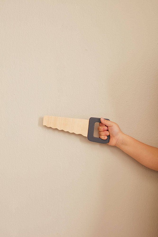 Skrzynka jest w całości wykonana z drewna i ma piękne łączenia typu jaskółczy ogon, dzięki czemu jest wyjątkowo wytrzymała, choć nie użyto żadnych śrub. W skrzynce narzędziowej znajdziesz gwoździe i śrubki do zabawy. Na krótszym boku pudełka znajdują się gwintowane otwory, w które możesz wkręcić swoje śrubki i przymocować nakrętkami jak prawdziwy stolarz. Na dłuższym boku znajdują się otwory, w które można wbić gwoździe. A może zbudujesz coś niezwykłego, używając płytek konstrukcyjnych? Ale kim byłby mały stolarz bez zabawkowych narzędzi? W skrzynce znajdziesz oczywiście młotek, klucz, piłę i śrubokręt, wykonane z drewna z certyfikatem FSC. Wszystko po to, by mogły służyć kolejnym pokoleniom.