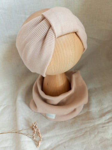Opaska z podwójnej tkaniny, wykonana z bardzo miękkiej i przyjemnej w dotyku dzianiny prążkowanej.