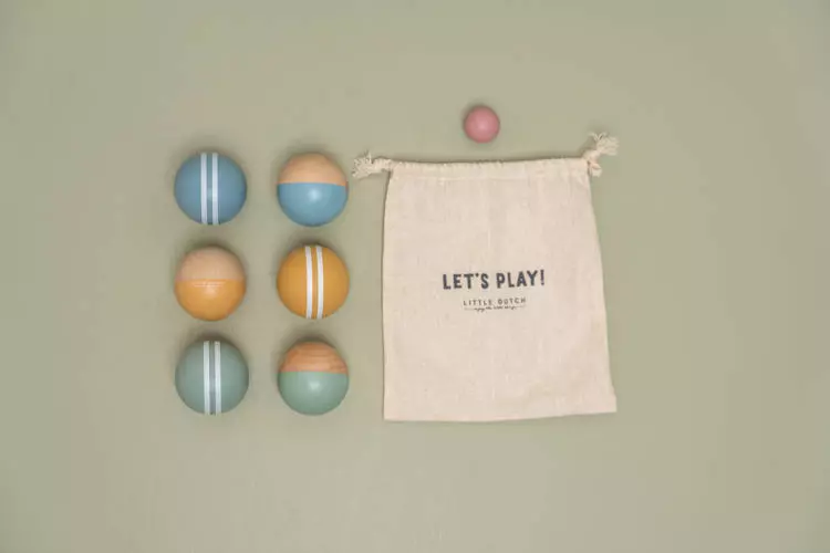 Zestaw piłek do gry Boules od Little Dutch. Rzucaj drewnianymi bulami, by znaleźć się jak najbliżej najmniejszej kulki, aby zdobyć punkty. Znajdź odrobinę wolnej przestrzeni, czy to w domu, czy na zewnątrz i zaproś rodzinę i przyjaciół na grę w bule. Wybierz swój kolor i zacznij rzucać! Gra w bule pobudzi koordynację ręka-oko podczas zabawy. Ten zestaw drewnianych piłek do gry w bule zawiera 6 dużych piłek, 2 małe oraz torbę do przechowywania wszystkich elementów. Cały zestaw utrzymany jest w uroczej pastelowej kolorystyce i świetnie sprawdzi się jako prezent zarówno dla dziewczynki, jak i dla chłopca.