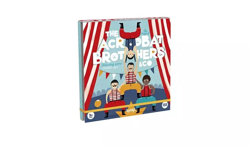 Rewelacyjna gra zręcznościowa dla dzieci. Bracia Akrobaci to 10 sztuk figurek - akrobatów, którzy potrafią utworzyć bardzo wysoką wieżę!. Ile wyobraźni u dziecka tyle sposobów na ustawienie akrobatów. Najważniejsze jest to, aby się utrzymali - nie przewrócili. Zobaczmy, którzy nieustraszeni gracze będą umieli przeciwstawić się prawom grawitacji i zbudują najwyższą wieżę.