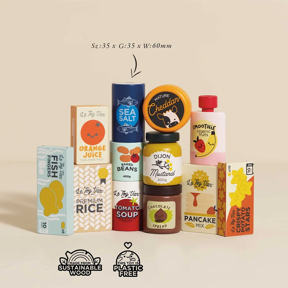 Wykonany z drewna certyfikowanego FSC®, ten zestaw spożywczy jest nie tylko ekologiczny, ale także trwały. Bezpieczeństwo jest dla marki Le Toy Van priorytetem, dlatego użyto nietoksycznych farb, aby zapewnić dzieciom bezpieczną zabawę.