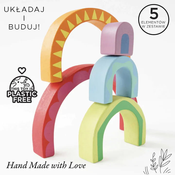 - Drewniana zabawka układanka w kształcie tęczy