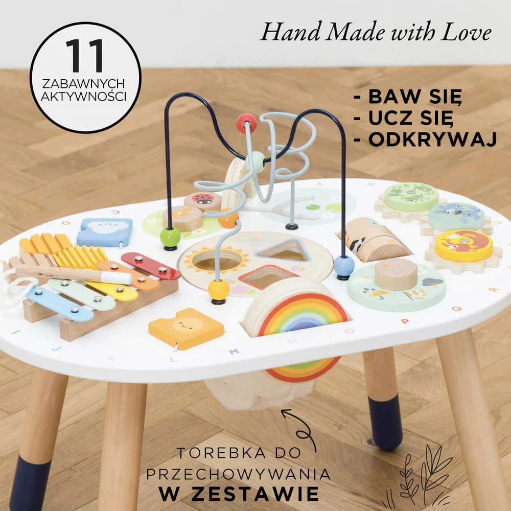 Ten niesamowity stolik aktywności to prawdziwa uczta dla zmysłów i doskonała zabawka rozwojowa dla małych dzieci..