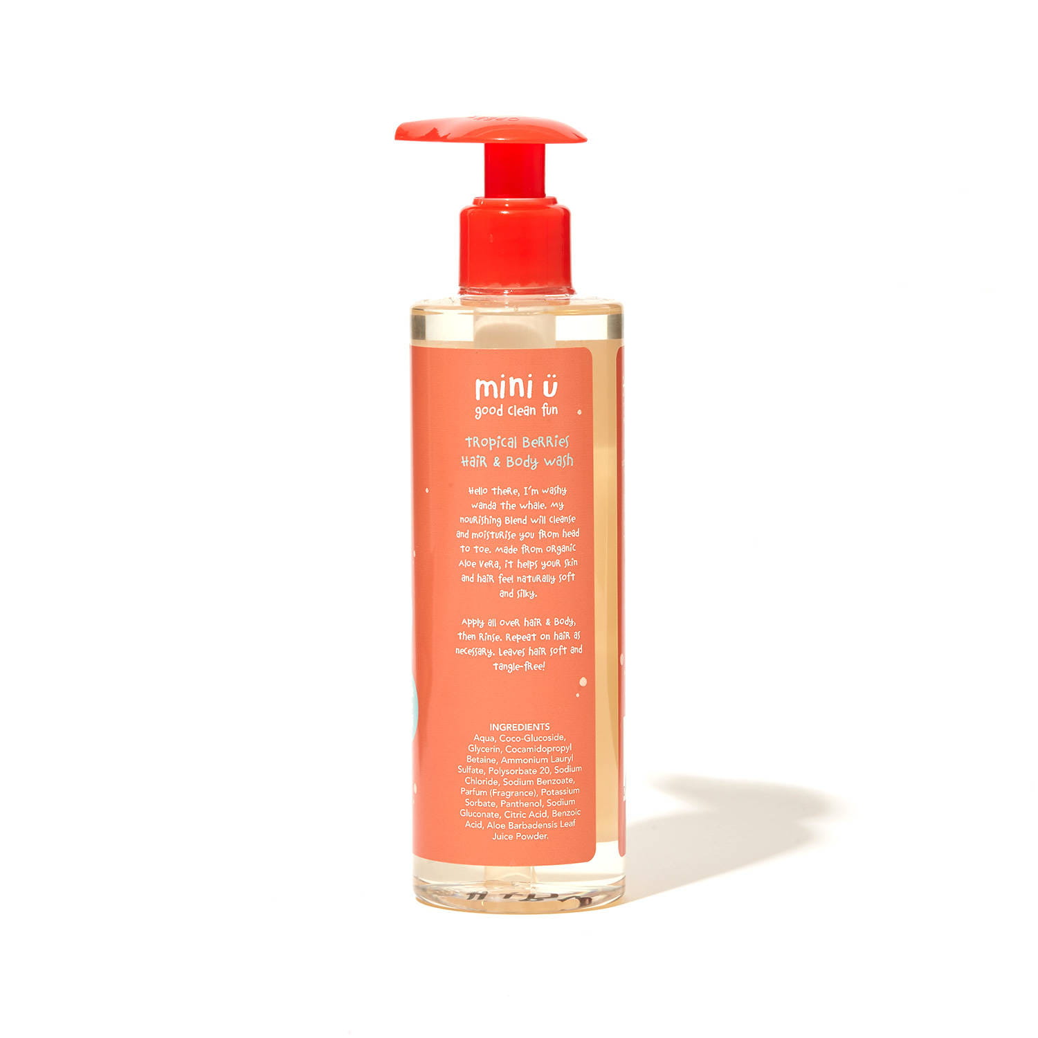 Aqua, Coco-Glucoside, Glycerin, Cocamidopropyl Betaine, Ammonium Lauryl Sulfate, Polysorbate 20, Sodium Chloride, Sodium Benzoate, Parfum (Fragrance), Potassium Sorbate, Panthenol, Sodium Gluconate, Citric Acid, Benzoic Acid, Aloe Barbadensis Leaf Juice Powder.