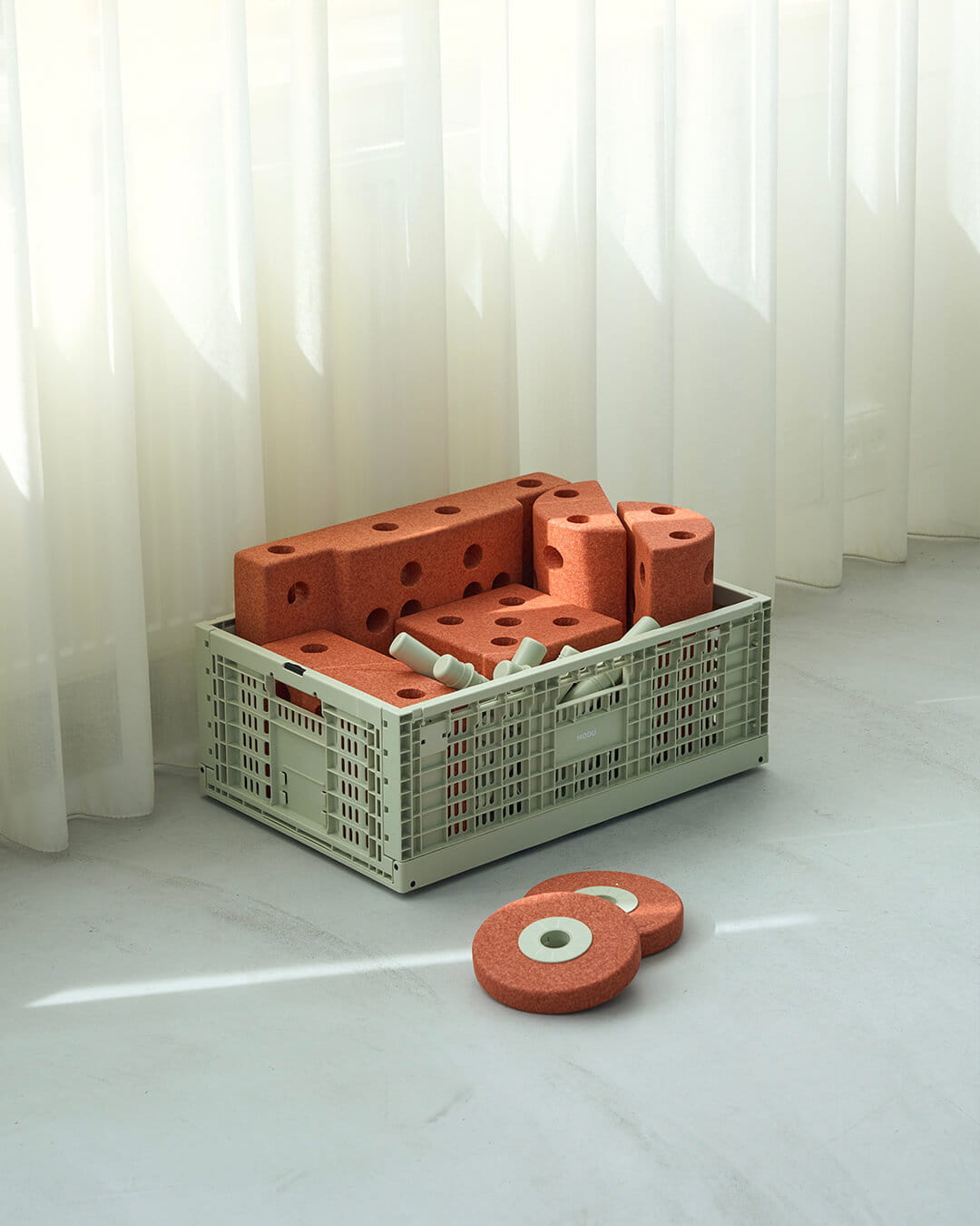 Gdy skrzynka nie jest używana, można ją złożyć na płasko, oszczędzając w ten sposób cenną przestrzeń. Do zestawu dołączone są etykiety, które ułatwiają organizację i szybkie odnajdywanie potrzebnych elementów. Skrzynka jest również kompatybilna z kółkami MODU (sprzedawanymi osobno), co pozwala na stworzenie mobilnego pojemnika na zabawki.